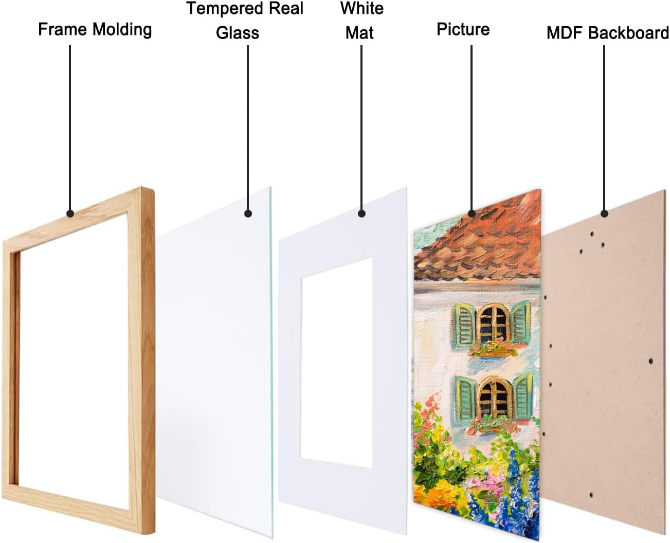 TKYGU12x16 Picture Frame 12"x16"Poster frame for Wall,Natural Oak Wooden Picture Frame 12 By 16 Photo Frame with Real Glass,12 x 16 Art Frame with Mat for 8.5x11,Collage Gallery Perfect for Home Gifts