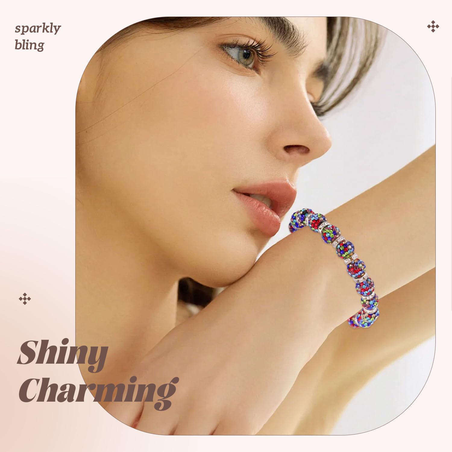 - BLING EFFECT --With great light reflecting effect, the gems add glitz to the beads and make it charming and eye-catching. Our beads are made of polymer clay embedded with glass rhinestones with shining and it's not easy to fall off