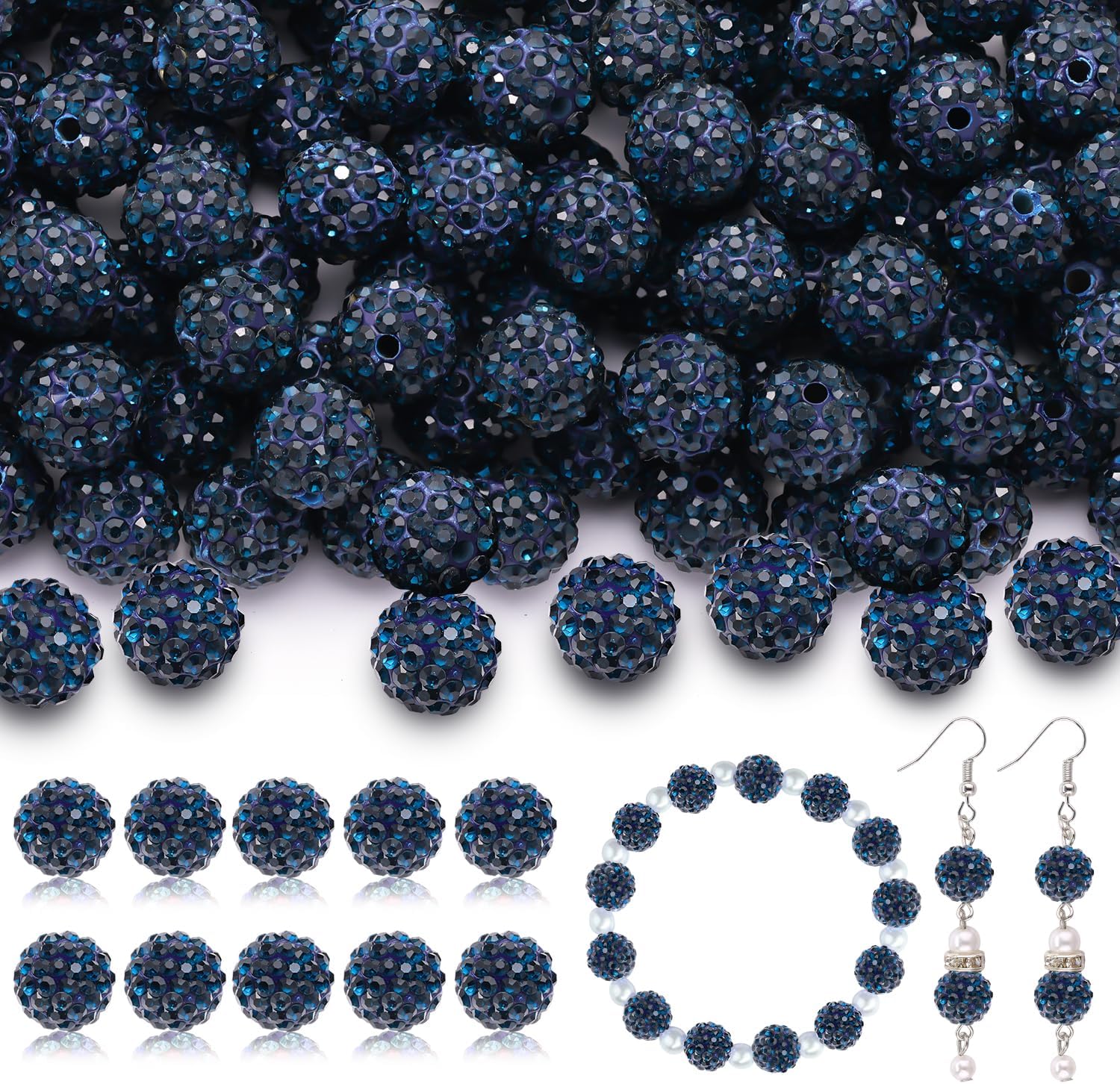 200pcs 10mm Rhinestone Beads for Jewelry Making, Blue Black Shiny Round Disco Ball Beads Bulk, Sparkle Crystal Clay Christmas for Bracelet Baseball Necklace Earring Crafting and DIY