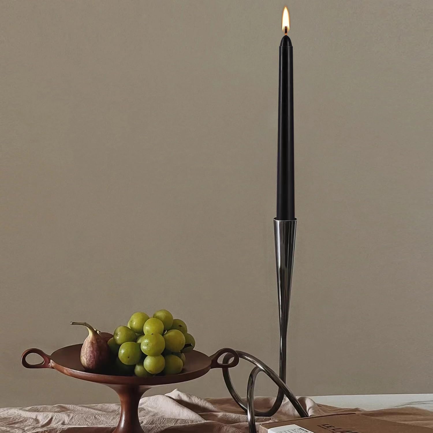 24 Pack Black Taper Candles, 7-8 Hours Burn Time, Unscented, Smokeless and Dripless, 0.75 x 10 Inch Dinner Candle Set for Halloween, Household, Wedding, Party and Home Décor Candlesticks