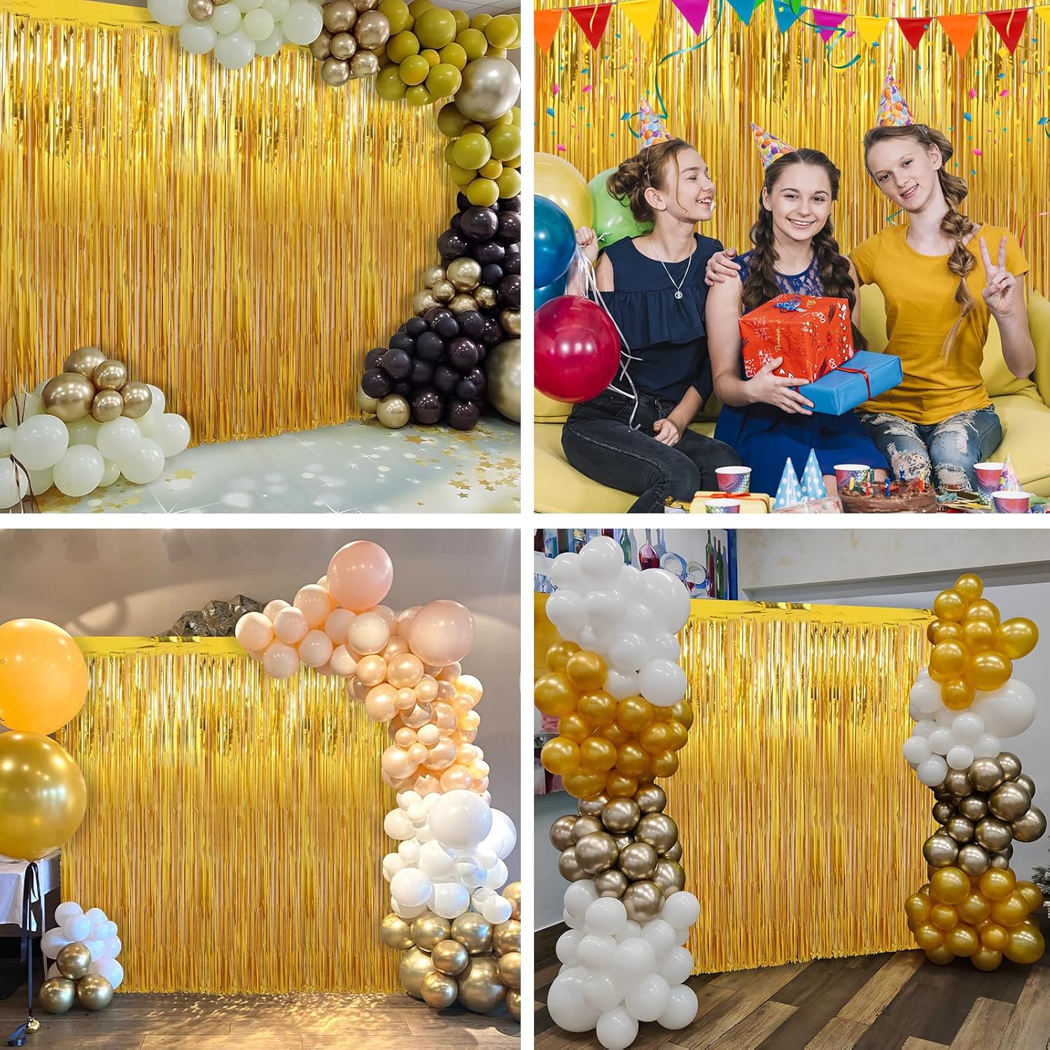 4 Pack Gold Foil Fringe Curtains Door Streamers Party Decorations 3.3 x 8.2 ft, Gold Tinsel Curtain Fringe Backdrop for Parties, Door Fringe Birthday Streamers, Photo Booth Backdrops, Party Decor