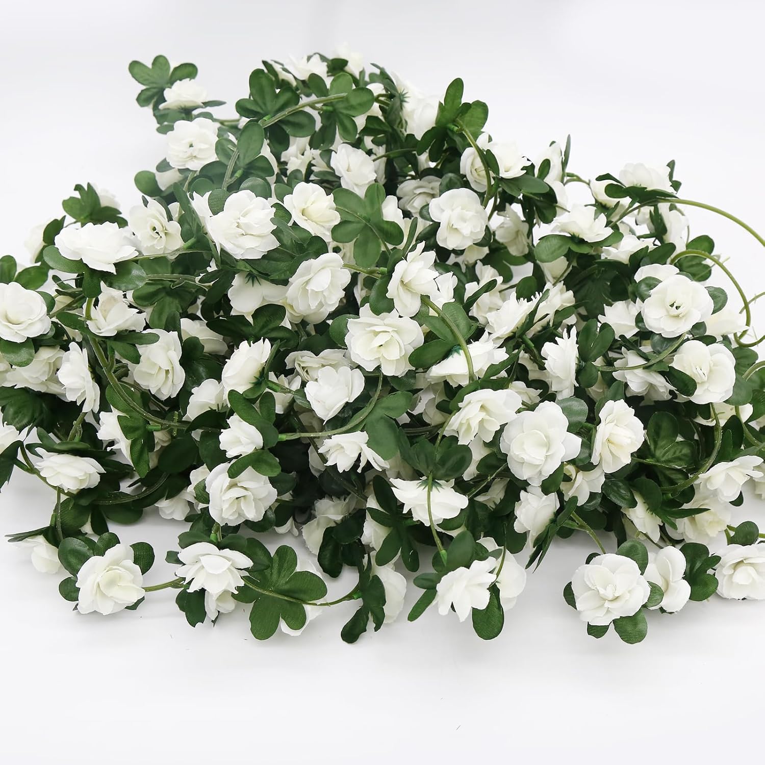- Packaging: Includes 12 artificial flower garland, each with 45 white silk roses and 45 leaves
