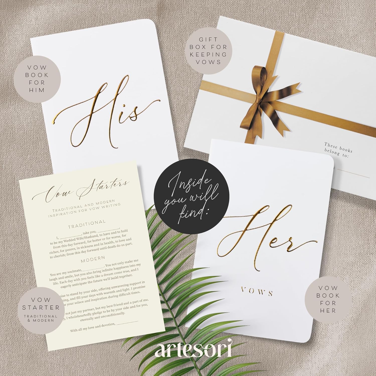 ARTESORI Premium Wedding Vow Book for Her & Him, Soft Touch, Gold Foil, 28 Lined Pages, Wedding Vow Books His and Hers, Wedding Essentials, Wedding Registry Ideas, His and Hers Gifts [White & White]