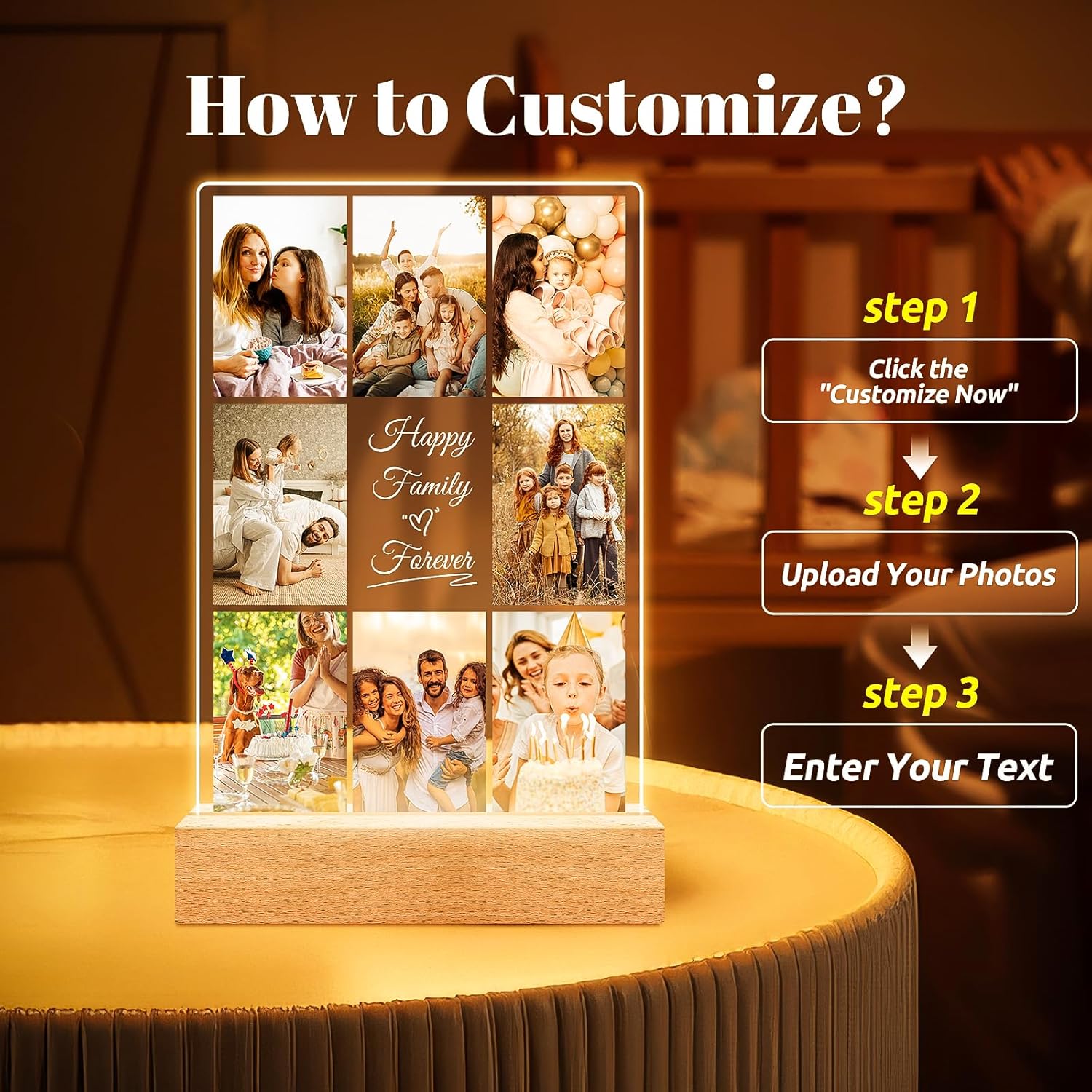 Personalized Collage Picture Frames with Photos, Custom Photo Frame with Night Light, Customized Birthday Gifts, Personalized Gifts for Women Men Mom Dad Kids Baby Family Friends
