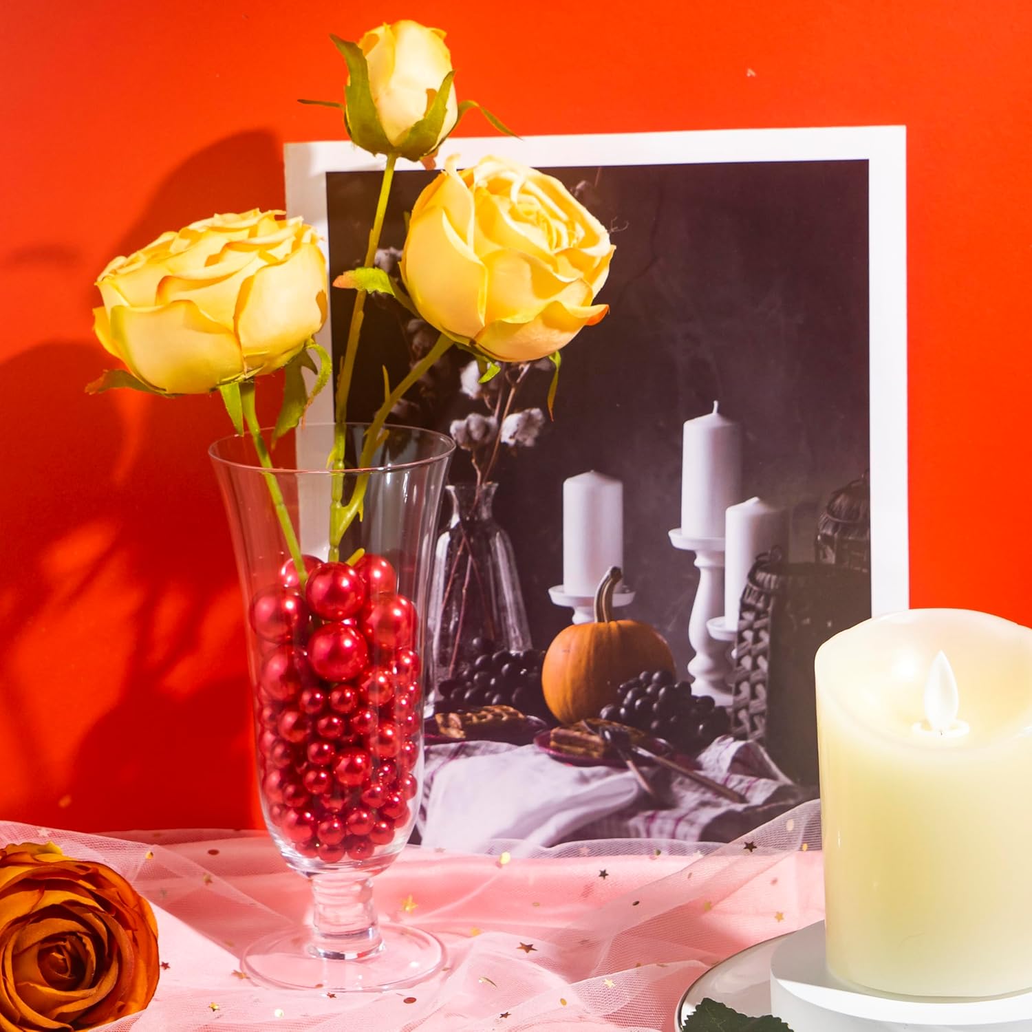 120 PCS 8/14/20mm No Hole Polish Pearl Beads for Centerpiece, Red Beads Decorative Vase Fillers, Plastics Pearls for Vases, Table Scatters, Wedding Party Decor