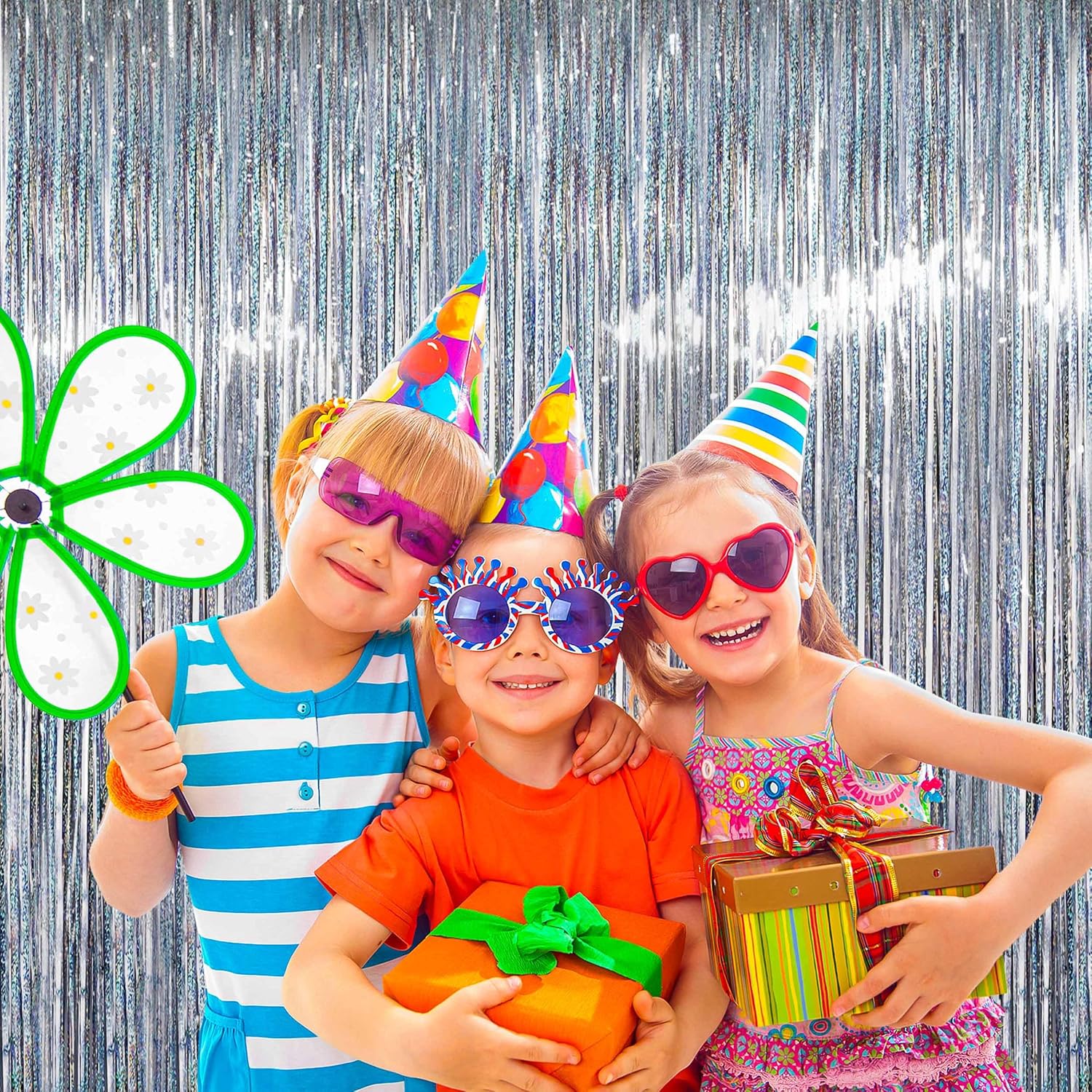 BTSD-home 10 Pack Laser Silver Foil Fringe Curtain Metallic Streamer Party Decorations Photo Booth Backdrop Door Curtains for Wedding Birthday Baby Shower Bachelorette Halloween