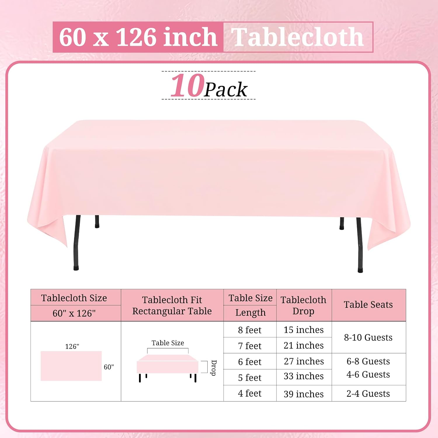 10 Pack Pink Tablecloths for 8ft Rectangle Tables 60 x 126 Inch - Polyester Table Cover Stain and Wrinkle Resistant Washable Fabric Table Clothes for Wedding Party Banquet Reception Restaurant