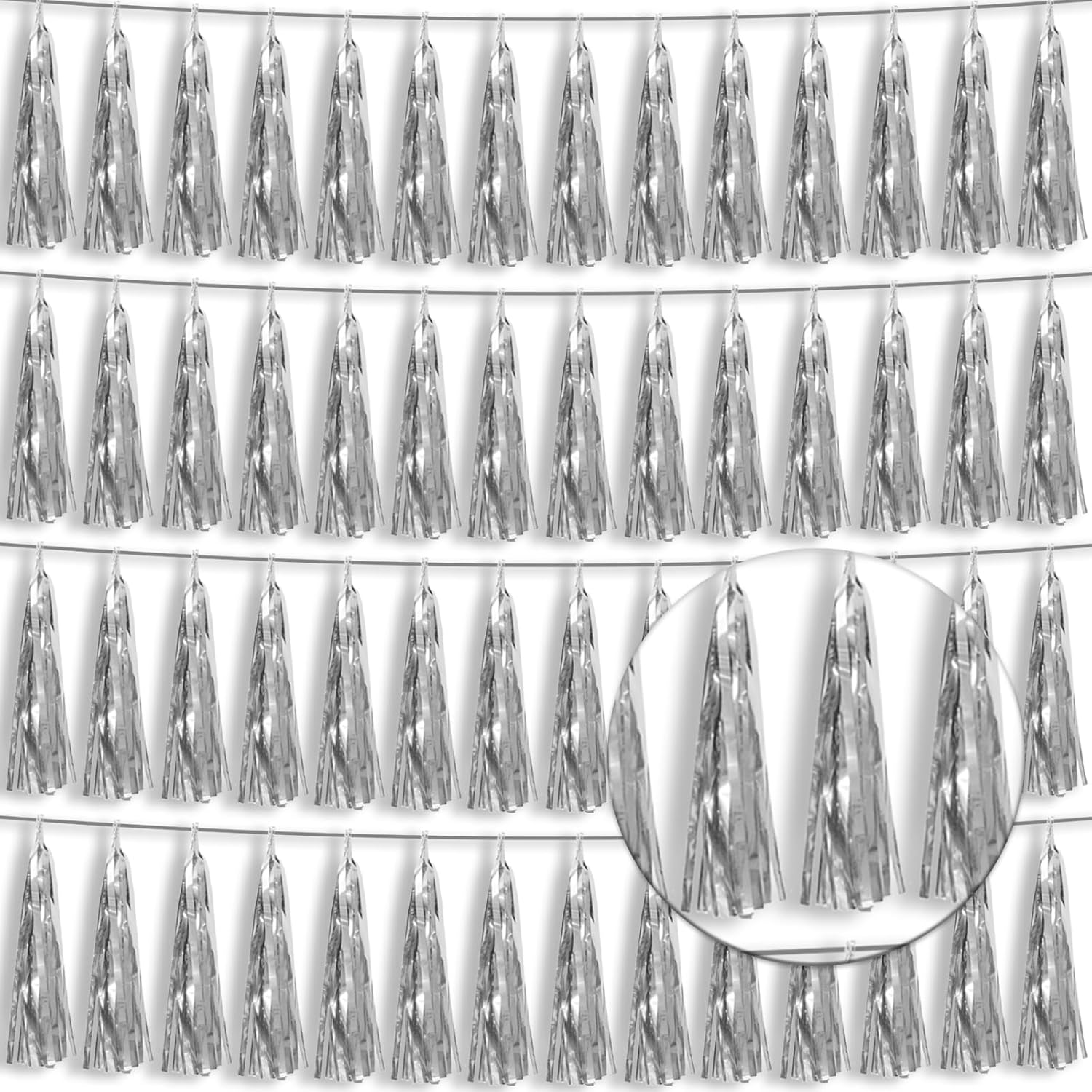 - 【Package Includes】The total length of the silver birthday tassels banner is 40 feet, divided into 4 strips, each 10 feet long. Each banner contains 15 tassels, and each tassel measures 14 inches, for birthday decorations many occasions uitable for Patriotic display, Homecoming Float, Christmas Float, ecorative metal trailers, graduation floats etc