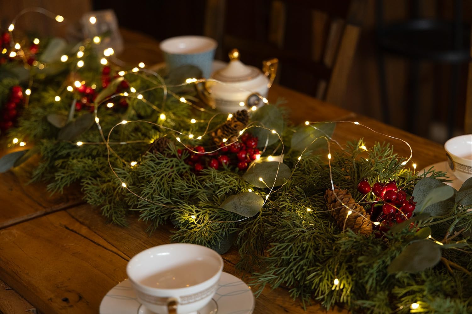- 【LED String Lights】: This Christmas garland comes with a long string of LED lights, meticulously crafted and powered by 3 AA batteries. The lights offer 8 different modes for you to customize the lighting, creating various atmospheres and scenes as desired.