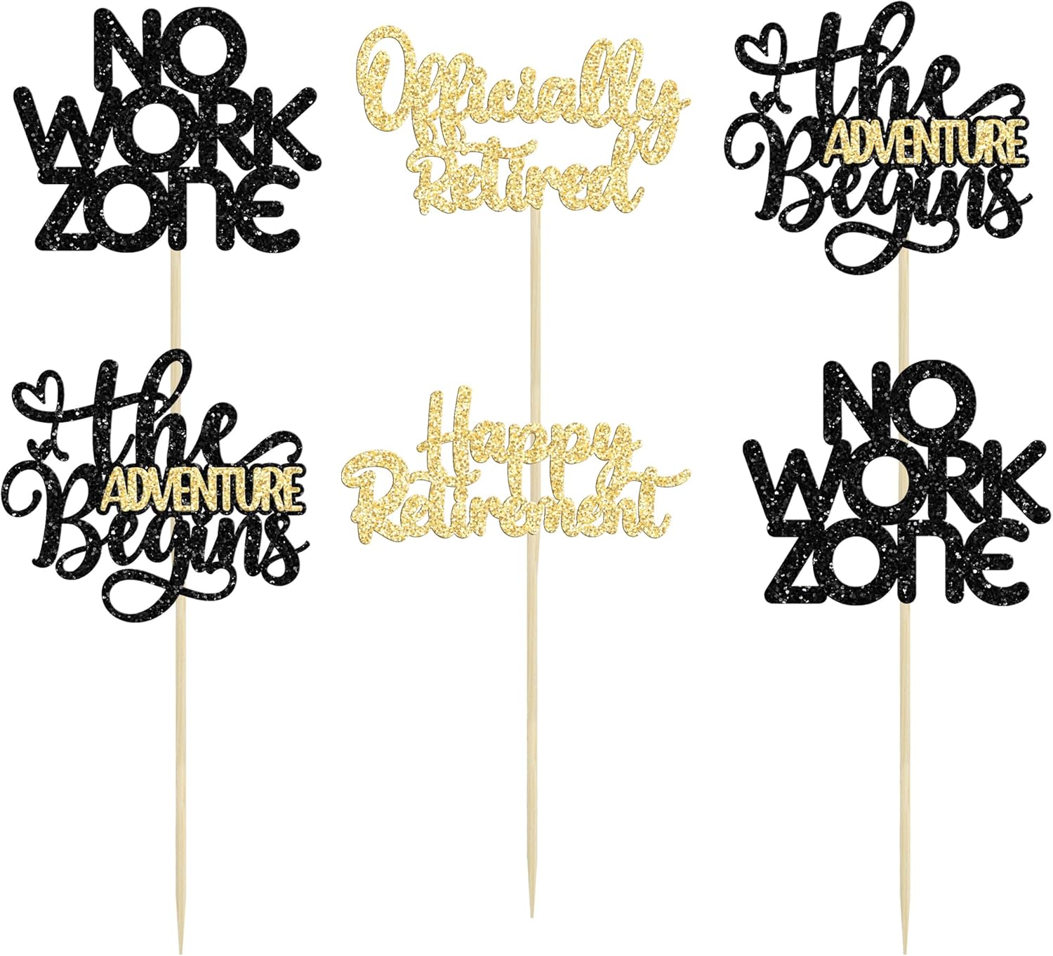 24Pcs Happy Retirement Cupcake Toppers Officially Retired Cake Toppers No Work Zone Adventure Begins Cupcake Picks Retirement Theme Farewell Birthday Party Decorations Supplies Black Gold