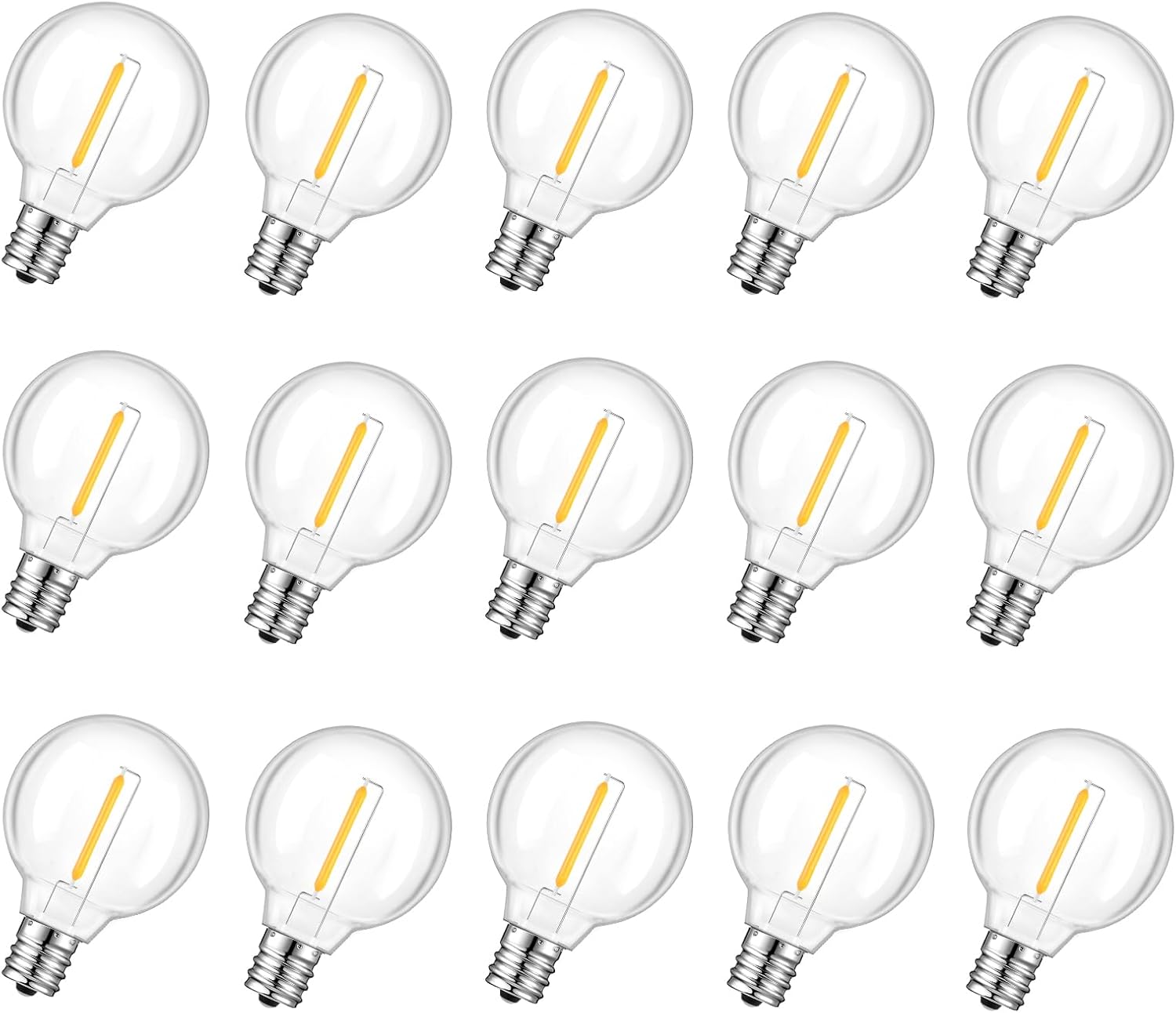 15 Pack G40 LED Replacement Light Bulbs for String Lights, Dimmable E12 Base Shatterproof Bulbs, 0.6W Equal to 5W, Warm White 2200K, Not Solar