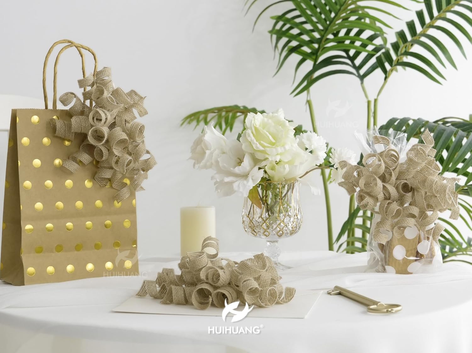 - WIDE APPLICATIONS: Burlap bows is the perfect finishing touch to any gift packaging, you can create a fancy package easily, enhance the look of party favor bags or boxes at events like weddings, birthdays, and baby showers, for holiday ornaments, wine bottles, favors bags
