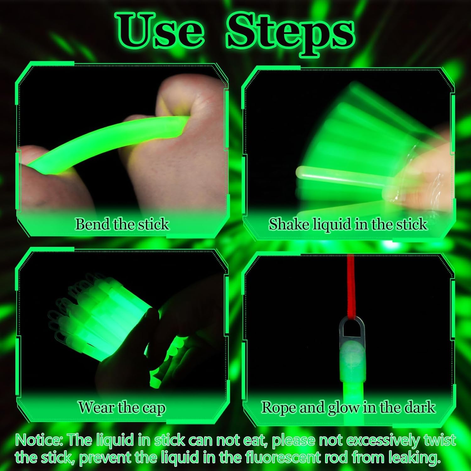 - Multipurpose Use: Large glow sticks have a hook, which allows easy hanging and quick illumination, and the glow sticks green bulk is not only applied for parties, concerts, or any rave party but also perfect for camping, hiking, and fishing, and they can also be an aid during boating trips and earthquakes, satisfying your lighting demands, can use them anytime.