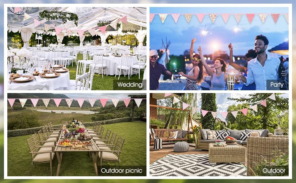 - 【Versatile Decoration】Whether you’re decorating for an outdoor garden party or an indoor celebration, this bunting banner is perfect. Hang it on walls, windows, ceilings, or around tables to create a festive atmosphere.