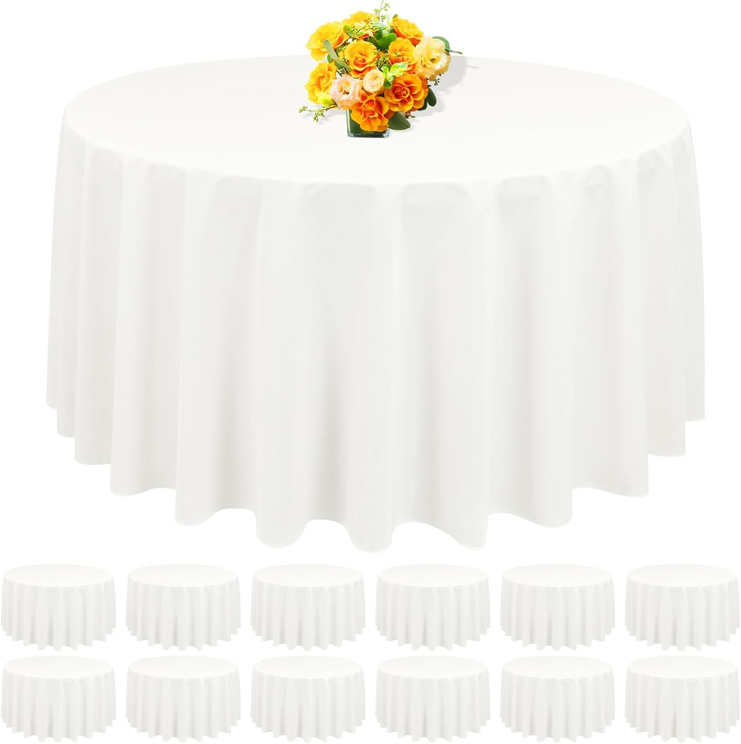 12 Pack Round Tablecloth 90 Inch - Ivory Polyester Table Cloth for Round Table, Premium Ivory Tableclothes Washable Fabric Table Cover for Wedding Party Banquet Restaurant Reception Dining