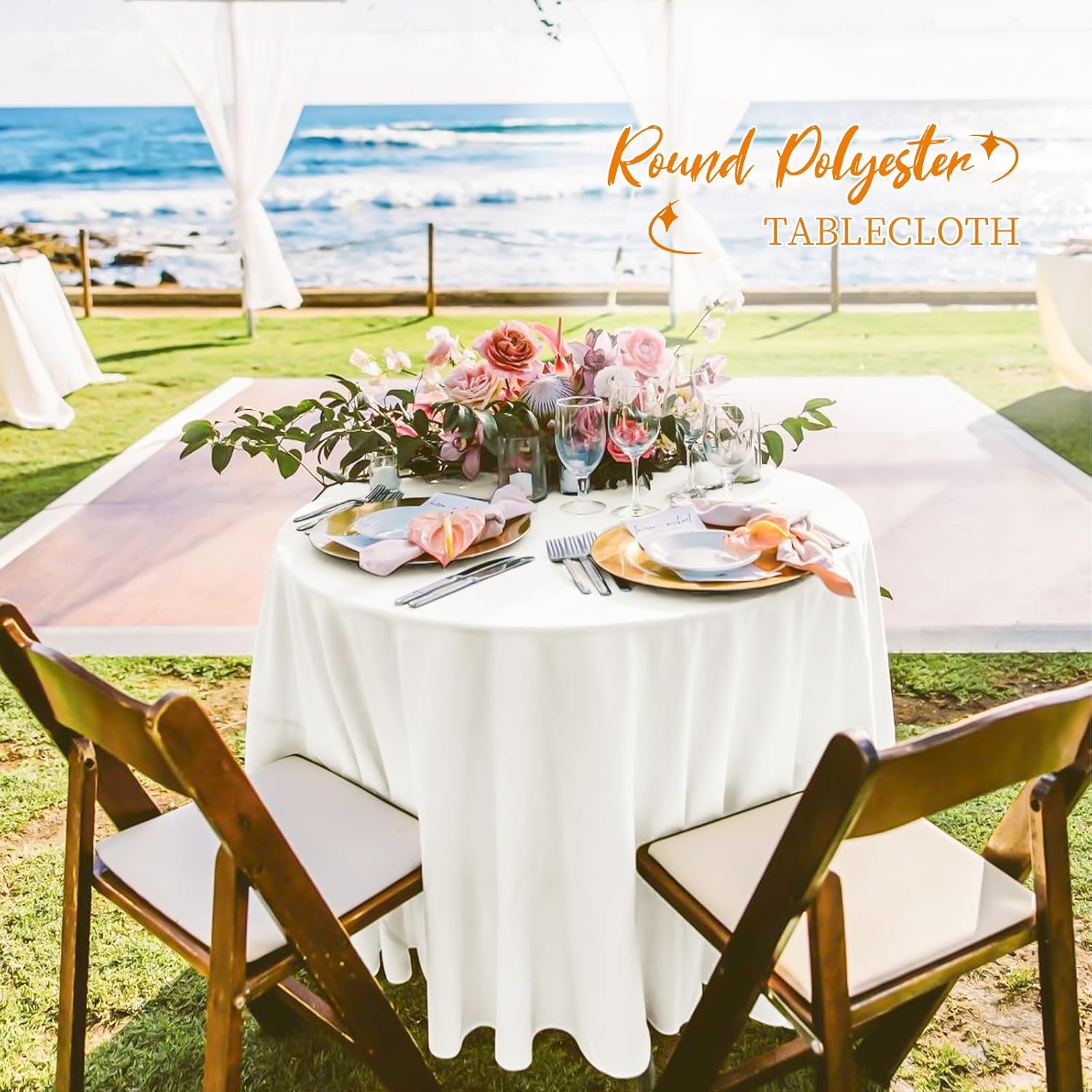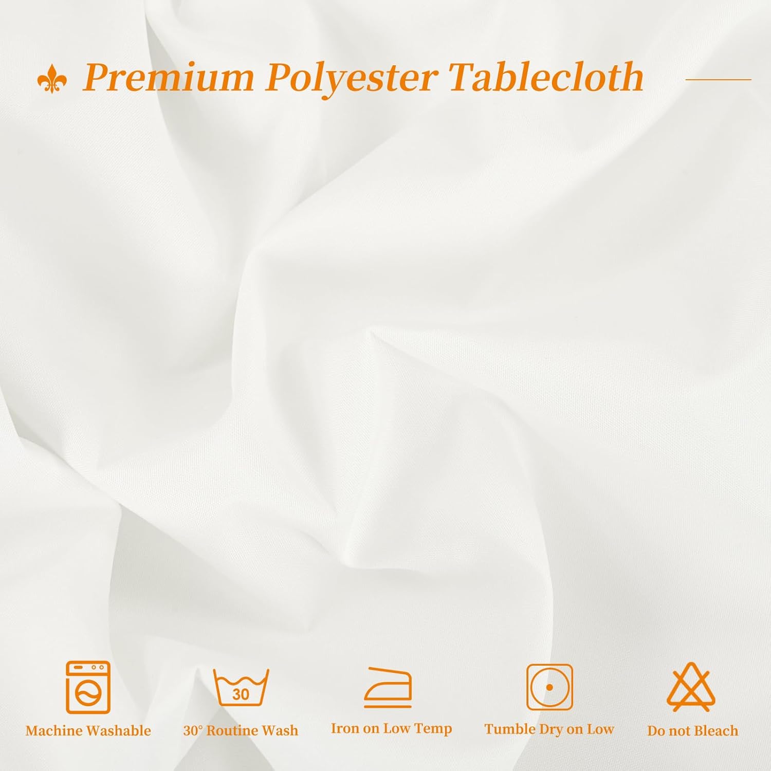 - 【Exquisite Workmanship】This tablecloth is a 1-piece seamless premium table cloth. Every part of the tablecloths is flat and smooth. The ivory round table cover are designed with folded borders and fine stitching to ensure an elegant look and no loose threads. Our color-fast dyes stay vibrant and true, and will not fade or transfer during washing or use. The party round polyester tablecloth makes your dining table neat, elegant and stylish.