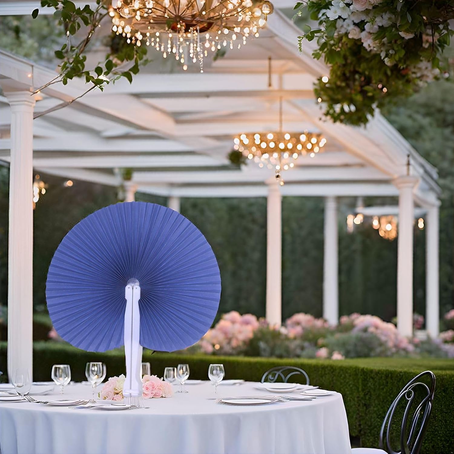 12 Packs Decorative Paper Folding Hand Fans Handheld,Navy Round Foldable Wedding Fans Chinese and Japanese Fans Bulk for Bridal Guest Church Party Favors Dancing Birthday DIY