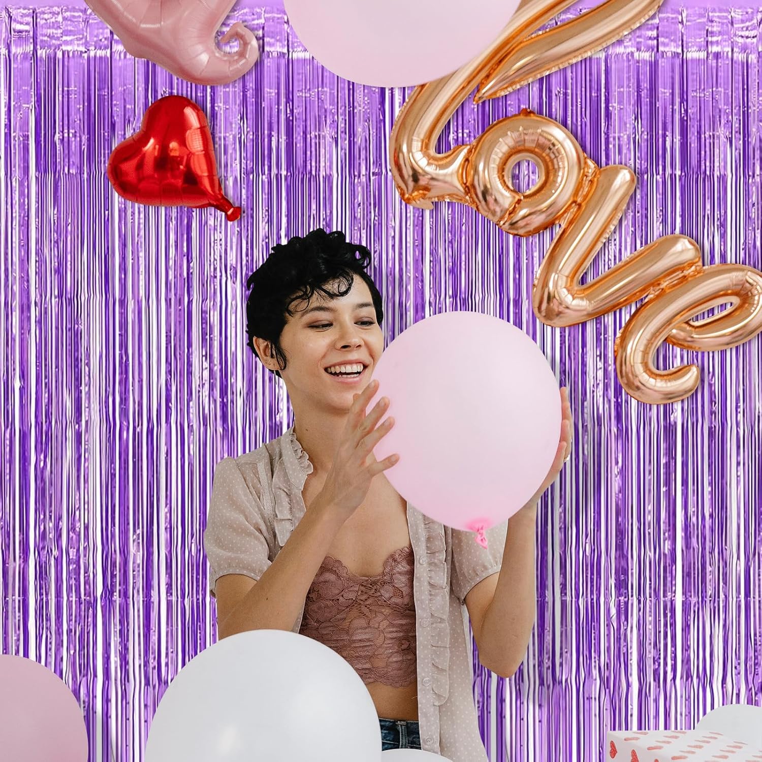 5 Pack Purple Foil Curtain Backdrop 3.2ft x 8.2ft Tinsel Foil Fringe Curtains Macaron Photo Booth Streamer Backdrop for Party Decorations Birthday Baby Shower Bachelorette Holiday (Light Purple)