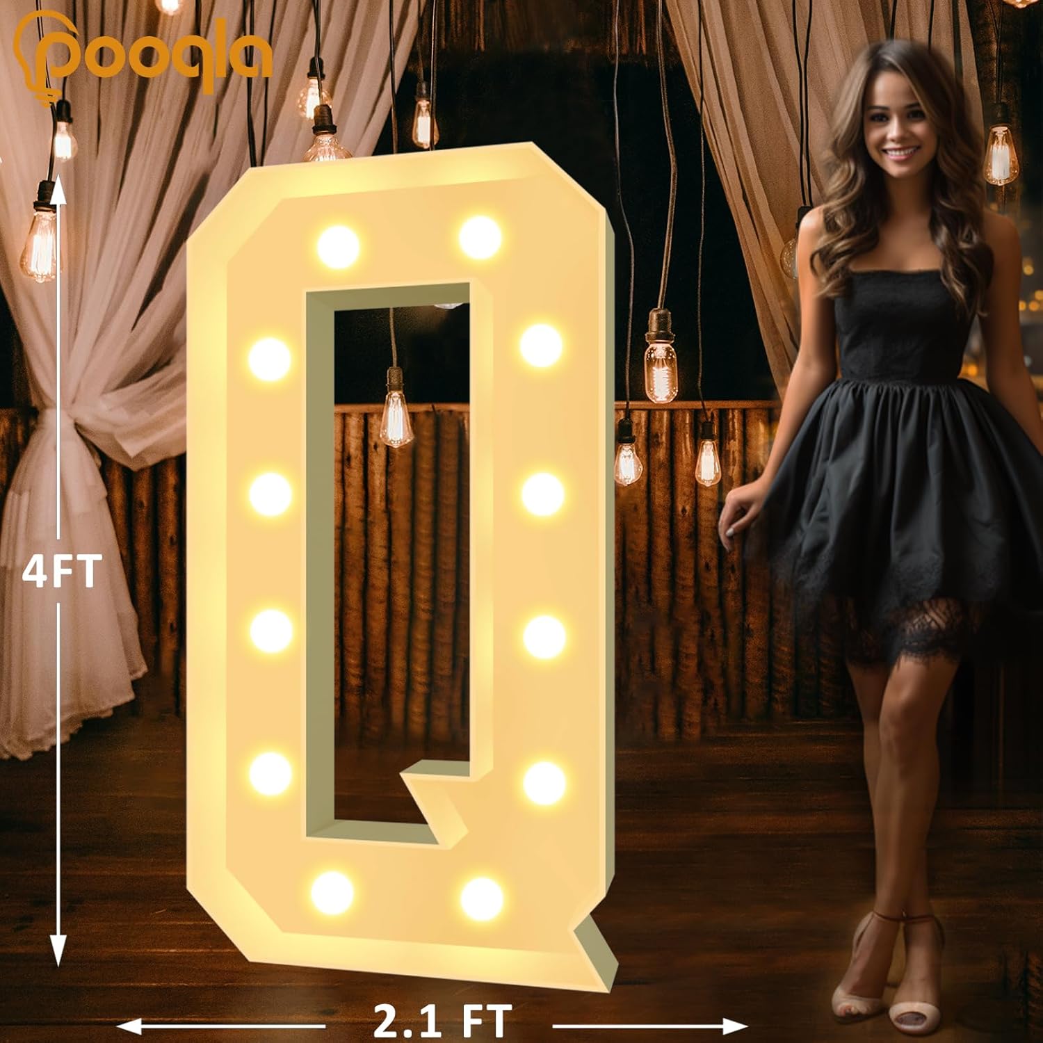 Pooqla 4 FT Marquee Light Up Letters, Cool White and Warm White Marquee Letter 4 Feet Tall, Giant LED Sign Big Mosaic Letter Q for Balloons Birthday Party Anniversary Wedding Decorations