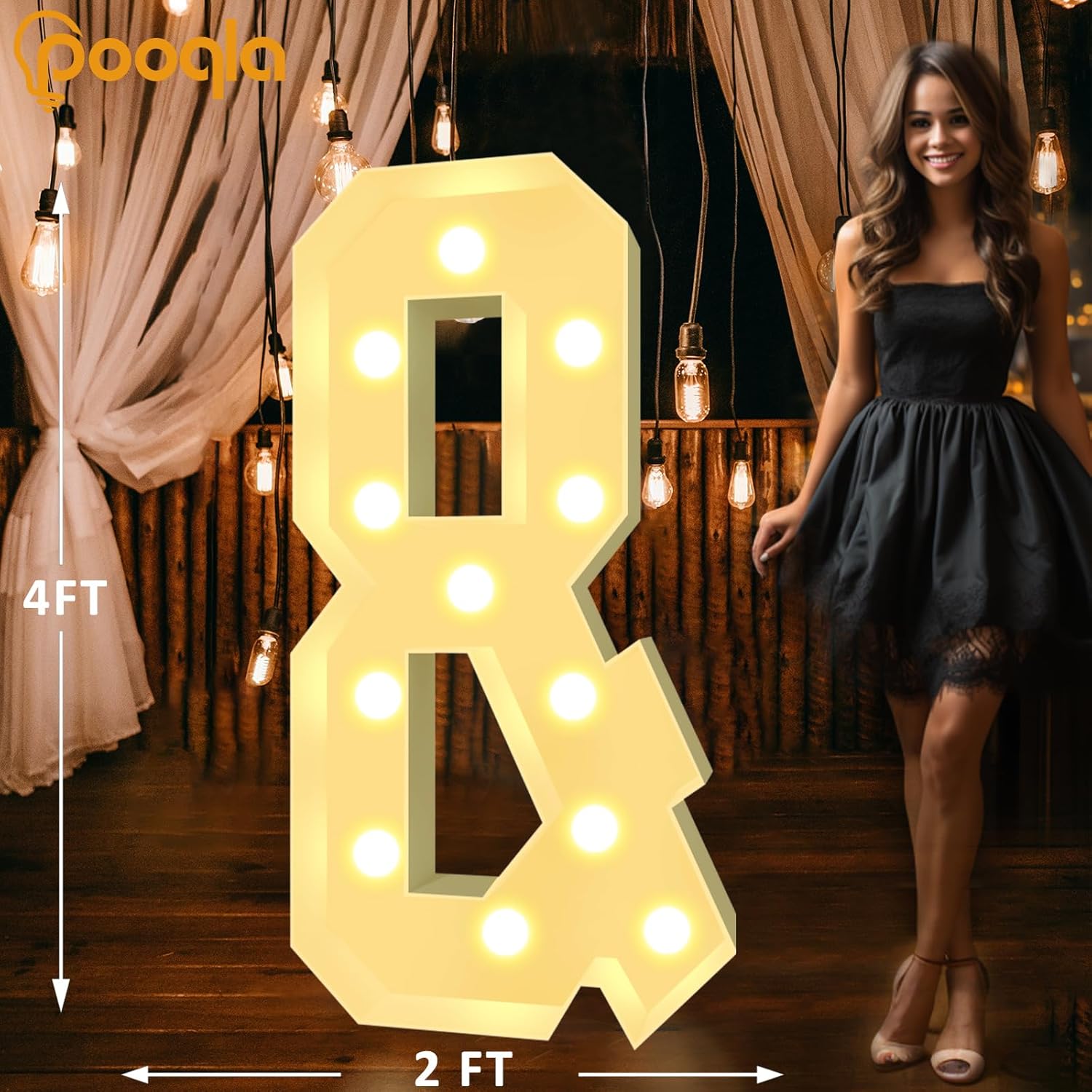 Pooqla 4 FT Marquee Light Up Letters, Cool White and Warm White Marquee Letters 4 Feet Tall, Giant Letter Sign Big Mosaic Letter for Balloons Birthday Party Anniversary Wedding Decorations, LED &