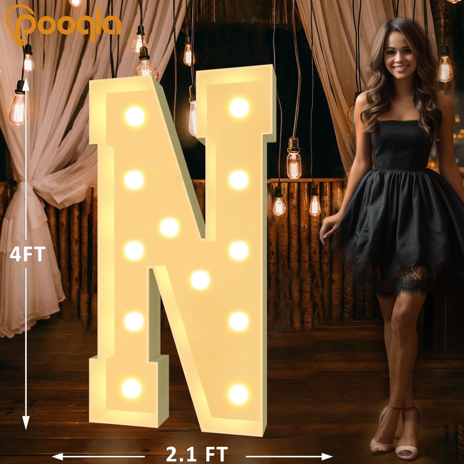 Pooqla 4 FT Marquee Light Up Letters, Cool White and Warm White Marquee Letter 4 Feet Tall, Giant LED Sign Big Mosaic Letter N for Balloons Birthday Party Anniversary Wedding Decorations