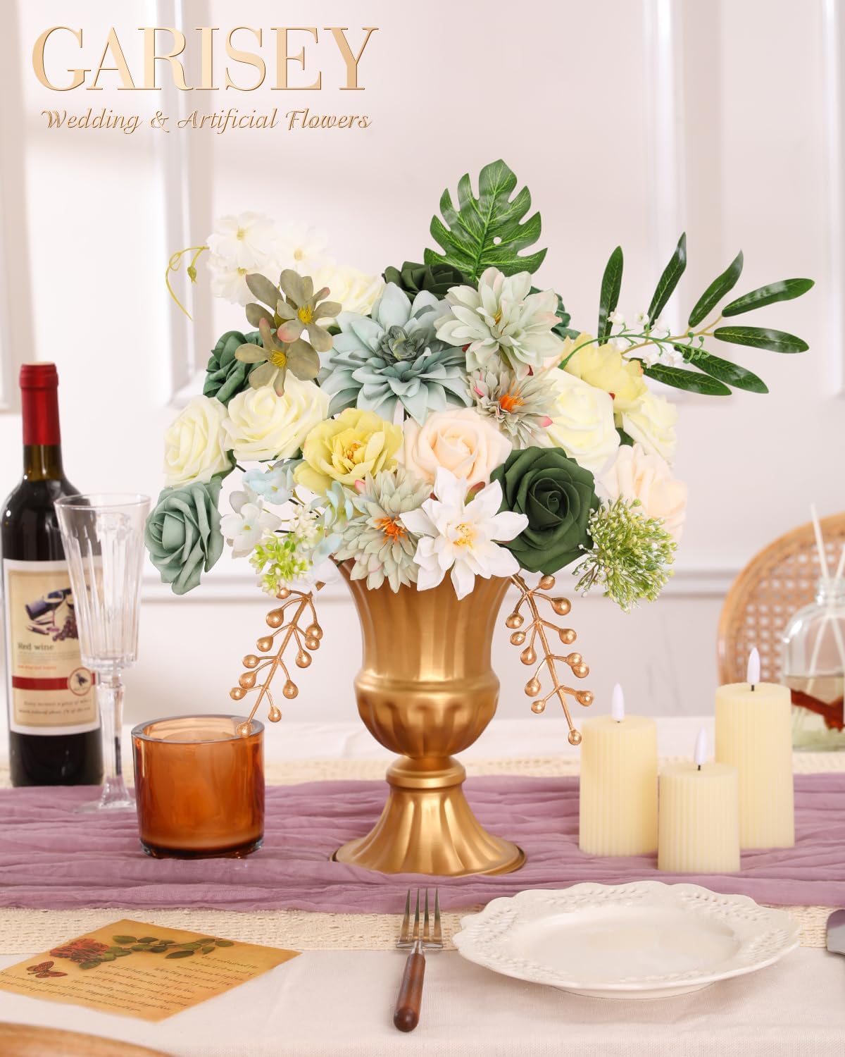 - 【🌸GREAT VALUE COMBO PACK】 Garisey artificial silk flowers combo never wilt. This pack includes a variety of flower styles and plastic greenery leaves that look not only beautiful but very lifelike, perfect for creating a romantic and warm atmosphere. Enjoy a delightful and hassle-free decorating experience with these stunning artificial flowers.