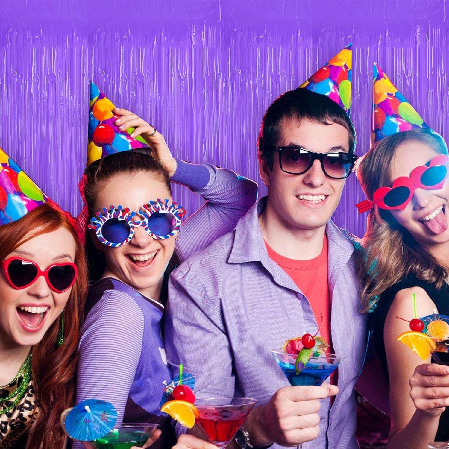 BEISHIDA 2Pcs Purple Door Streamer Fluorescent Purple Backdrop Blue Foil Fringe Curtains Tinsel for Birthday Baby Shower Halloween Backdrop Wedding Party Decoration (3.28 ft x 6.56 ft)