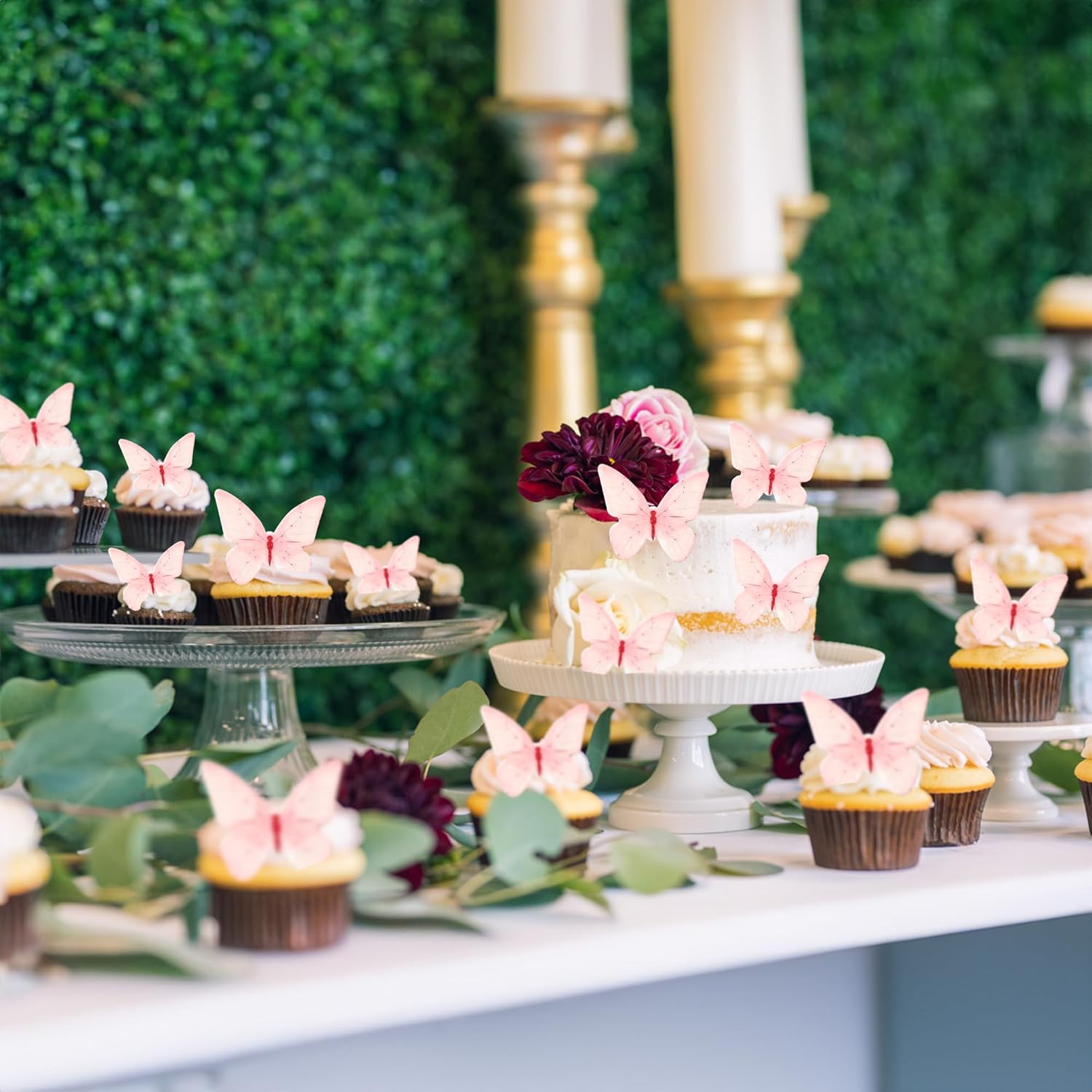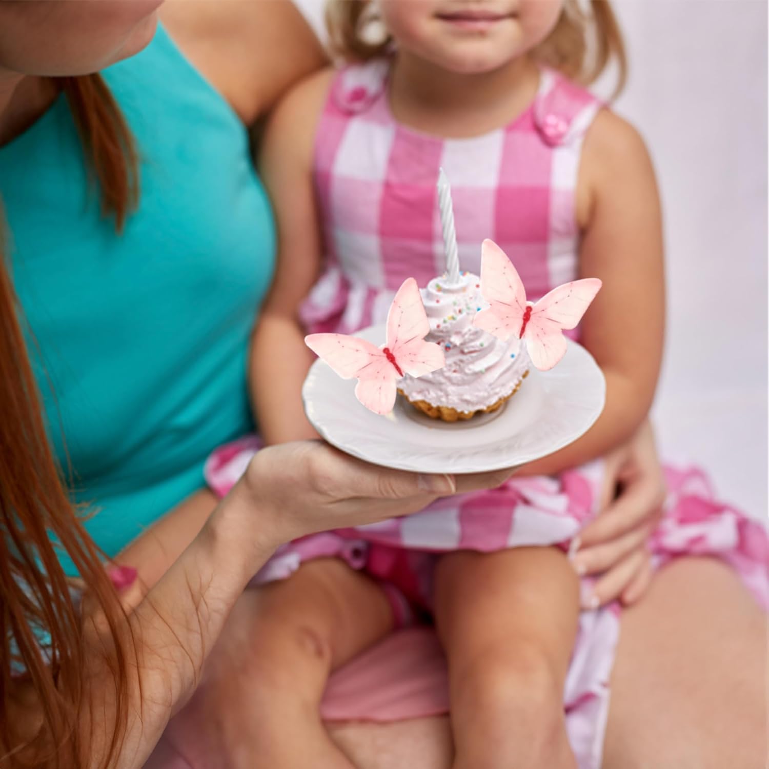 Ephlyn 48Pcs Edible Butterfly Cupcake Toppers Butterfly Cupcake Picks Edible Spring Cupcake Decorations for Spring Theme Baby Shower Kids Birthday Party Cake Supplies Pink