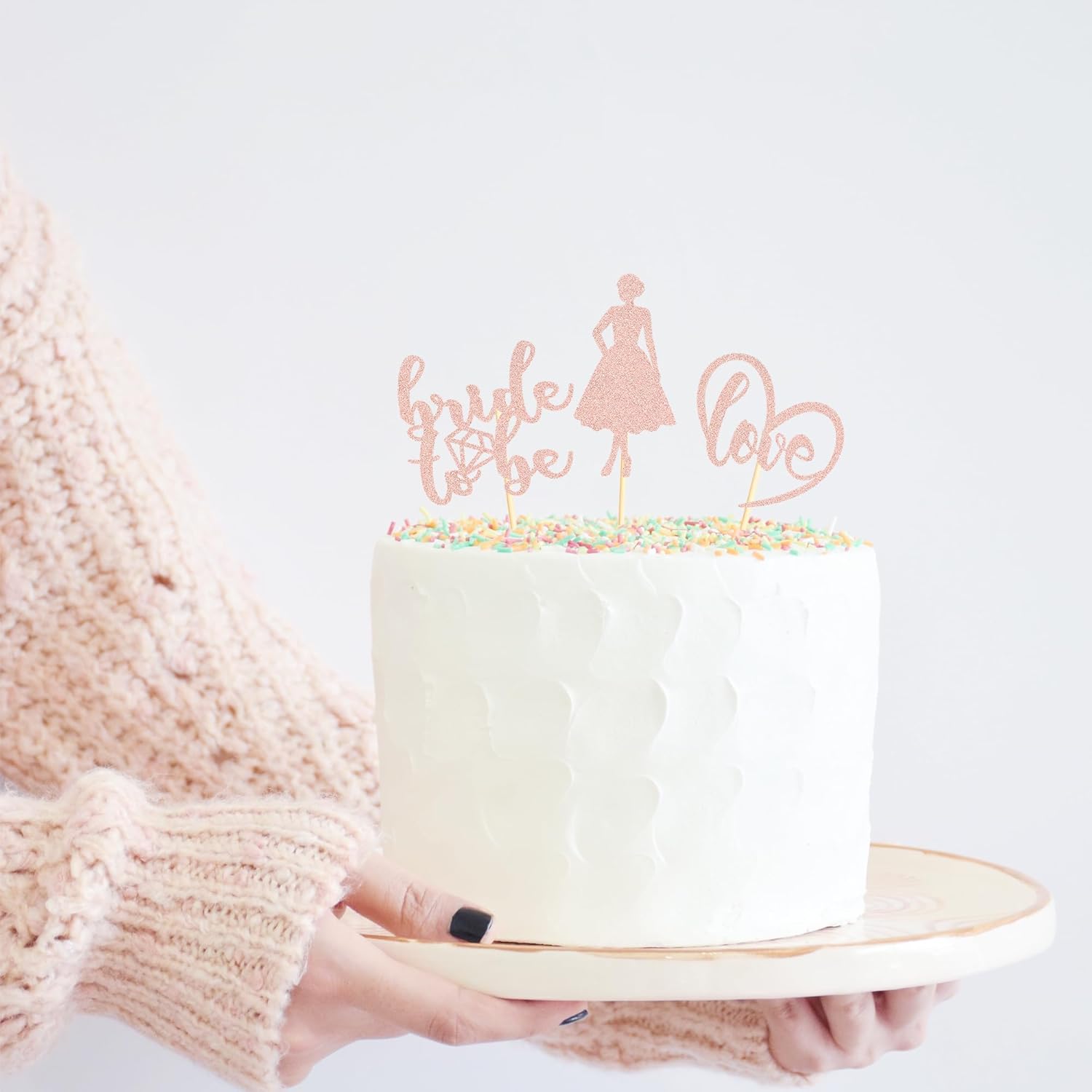 - Package Included: 3PCS Rose Gold Glitter Bride to Be Cupcake Toppers add "Ring"sign. Already assembled so you can insert into wedding engagement party decoration, which make your cake icing on the cake. Size: W 2.3 inch * H 4.72 inch / W 6 cm * H 12 cm(Including Stick)