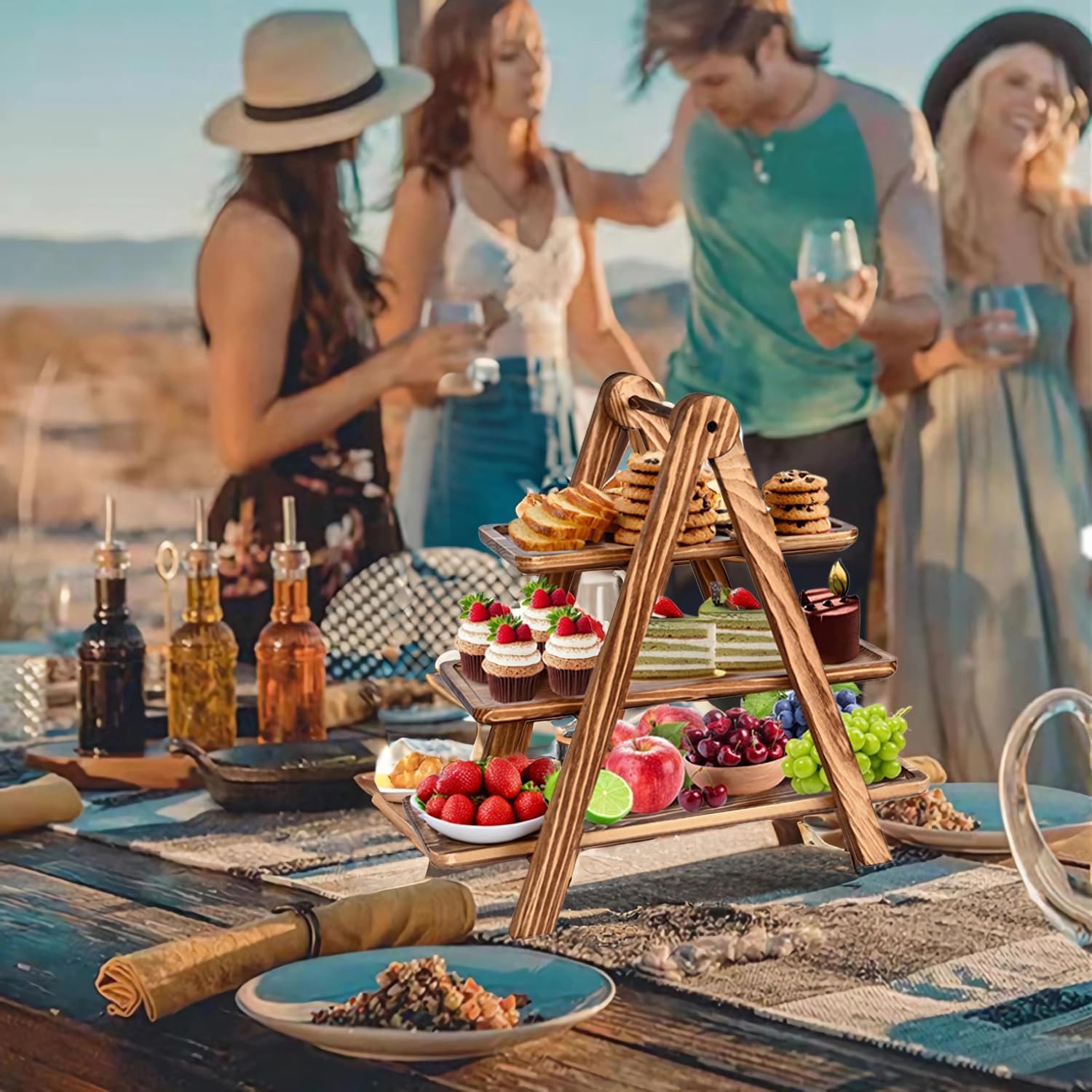 - Serving Tray Structure and Dimensions: This Serving Tray has a Detachable 3-tier structure,Stand with 3 rectangular trays of various sizes and 1 ladder rack,You can use it with the rack or use the wooden tray alone!The large tray 17" x 5.5" the medium tray 14"x 5.5" and the small tray 11"x 5.5",the ladder rack 13.46"x7"x17.04". accommodating a range of dessert sizes. The 4-inch spacing between tiers provides ample room for showcasing cakes, fruits, snacks, and other foods.
