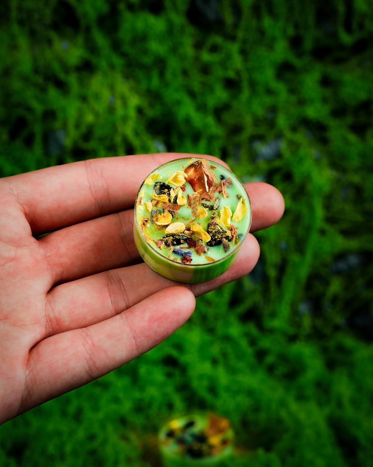 Tealight Soy Candles with Crystals And Herbs, Handmade Energy Candles, Healing Crystal Soy Candles, Aromatherapy Candles. (Green)