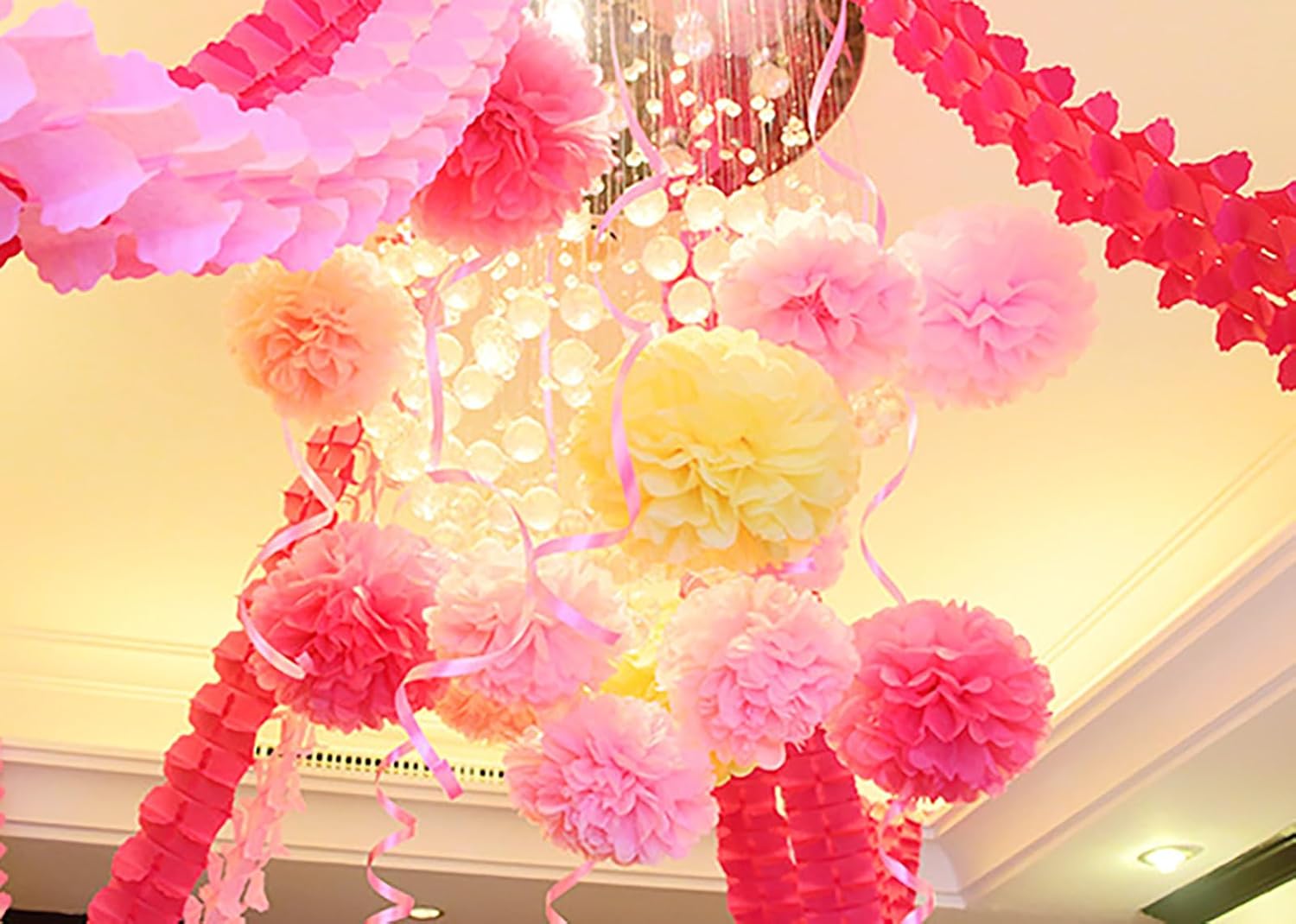 - PAPER FLOWERS: Package includes: 6 pcs 10", 6 pcs 12"paper pom-poms, two for each color and size