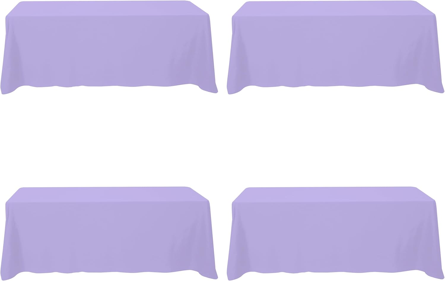 BRILLMAX 4 Pack Lavender Tablecloths for 8 Foot Rectangle Tables 90 x 156 Inch - 8ft Rectangular Bulk Linen Polyester Fabric Washable Cloth Cover for Wedding Reception Banquet Birthday Party