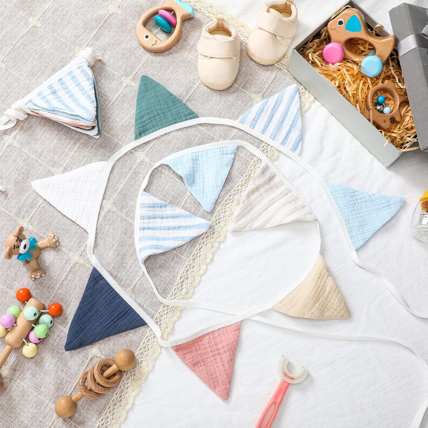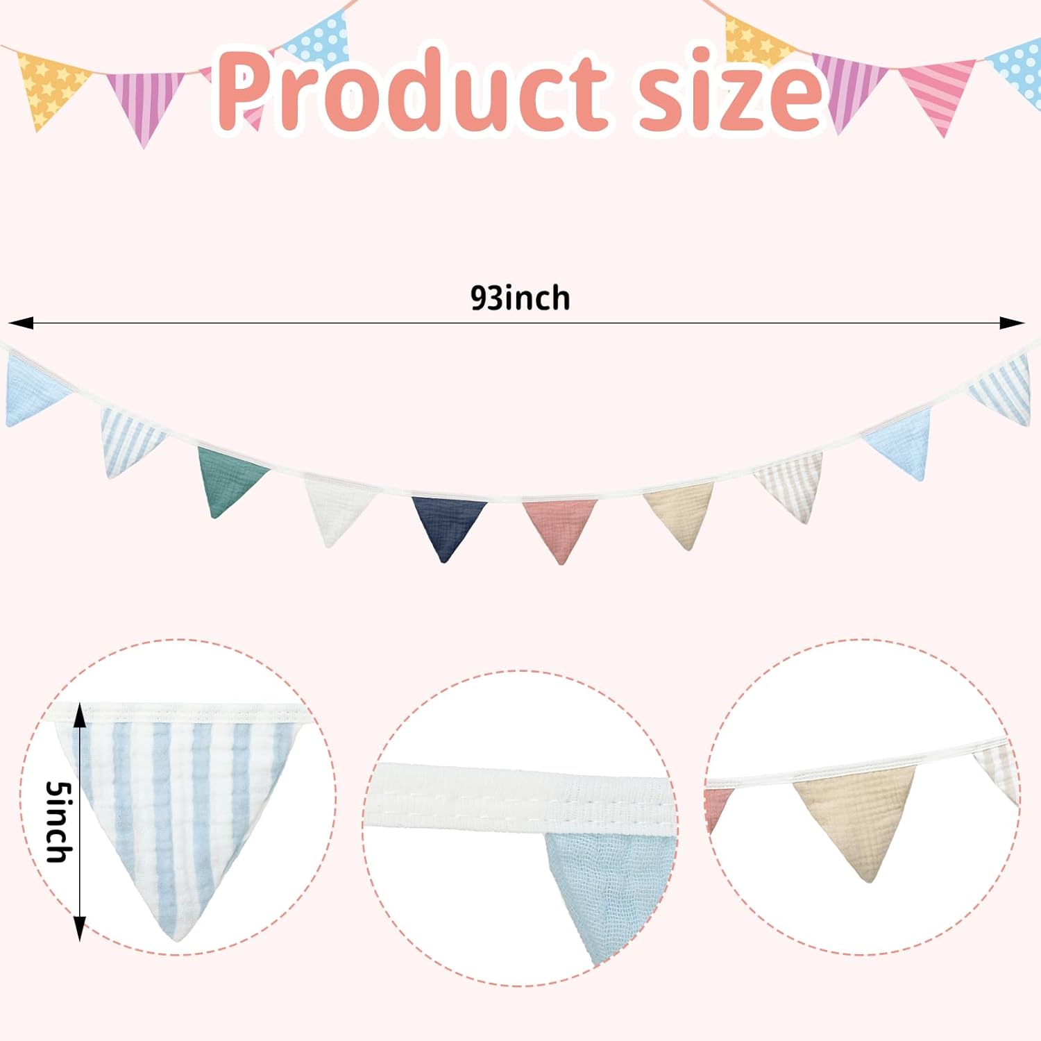 Oudain 15.5 ft Pennant Banner Flags, 2 Pcs Nursery Garland Triangle Bunting Flag Baby Banner for Nursery Decor Baby Birthday Boho Wedding Shower Party Event, Each 7.75 ft(Elegant Color)