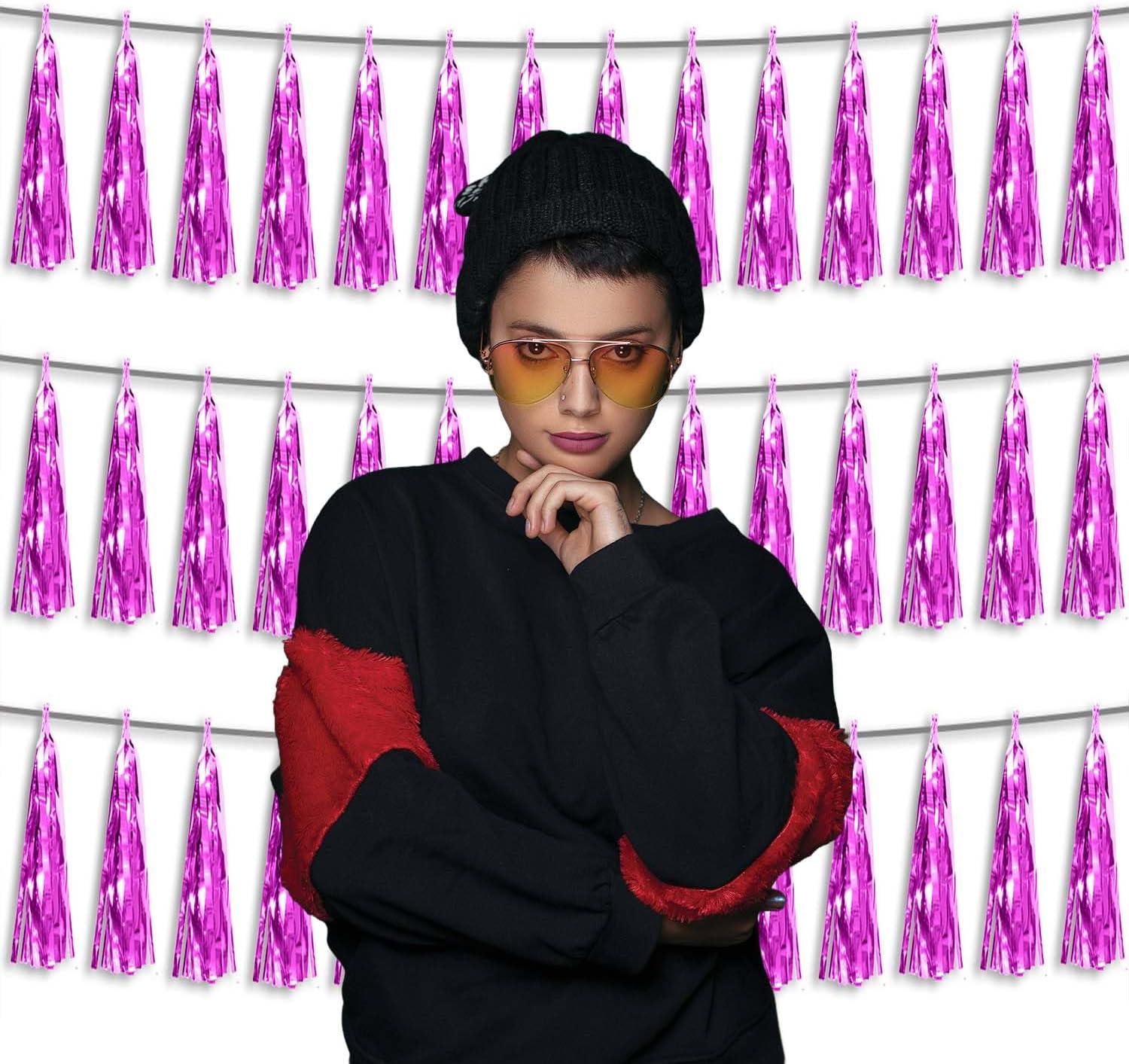 - 【Package Includes】The total length of the hot pink birthday tassels banner is 30 feet, divided into 3 strips, each 10 feet long. Each banner contains 15 tassels, and each tassel measures 14 inches, for birthday decorations many occasions uitable for Patriotic display, Homecoming Float, Christmas Float, ecorative metal trailers, graduation floats etc