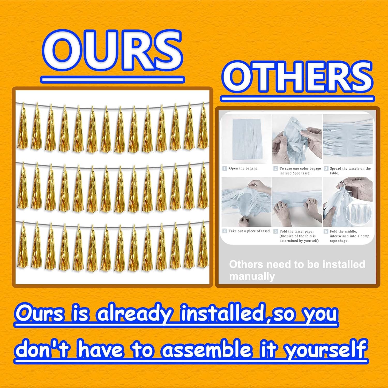 - 【Multiple Colors】Pair with metallic foil fringe garland of different colors to achieve the color combination you want. Show off your creativity by pairing this gold foil wall hanging banner with other garland in different colors to fulfill your dream of creating the perfect party scene.