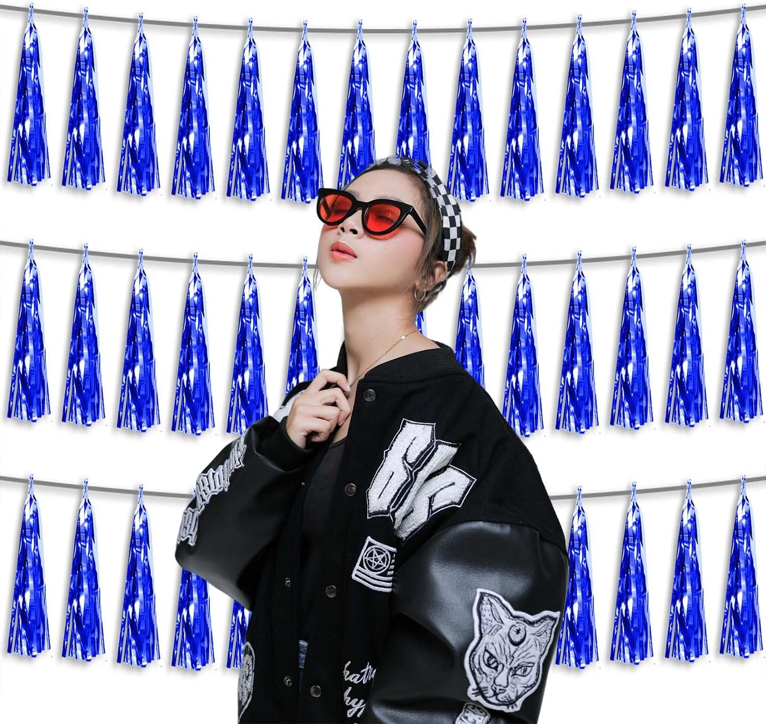 3P Metallic Fringe Tassel Banner Garland Foil Tinsel Streamer Wall Hanging Curtain Backdrop Banner for Parade Floats, Graduation Decorations, Retirement Party Decoration(Blue