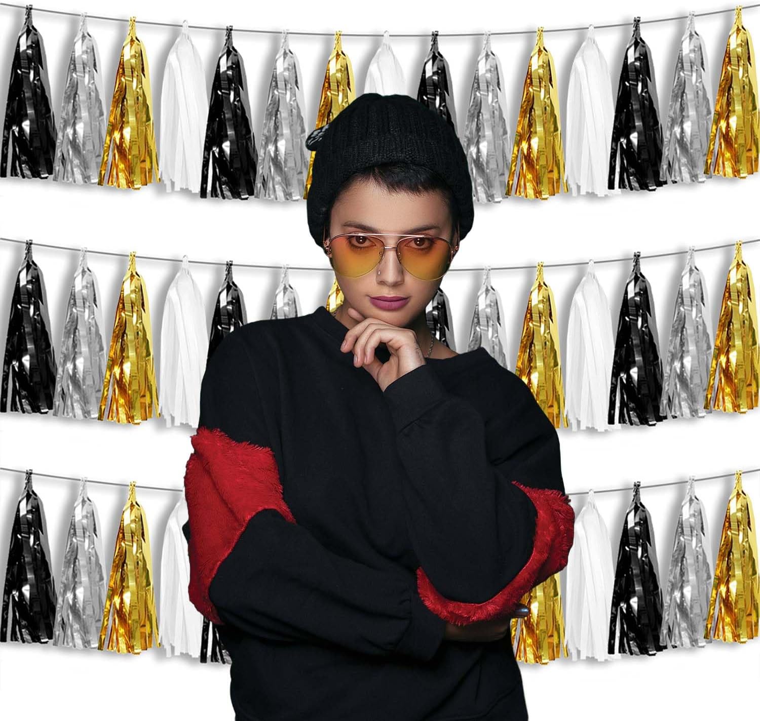 - 【Multiple Colors】Pair with metallic foil fringe garland of different colors to achieve the color combination you want. Show off your creativity by pairing this gold foil wall hanging banner with other garland in different colors to fulfill your dream of creating the perfect party scene.