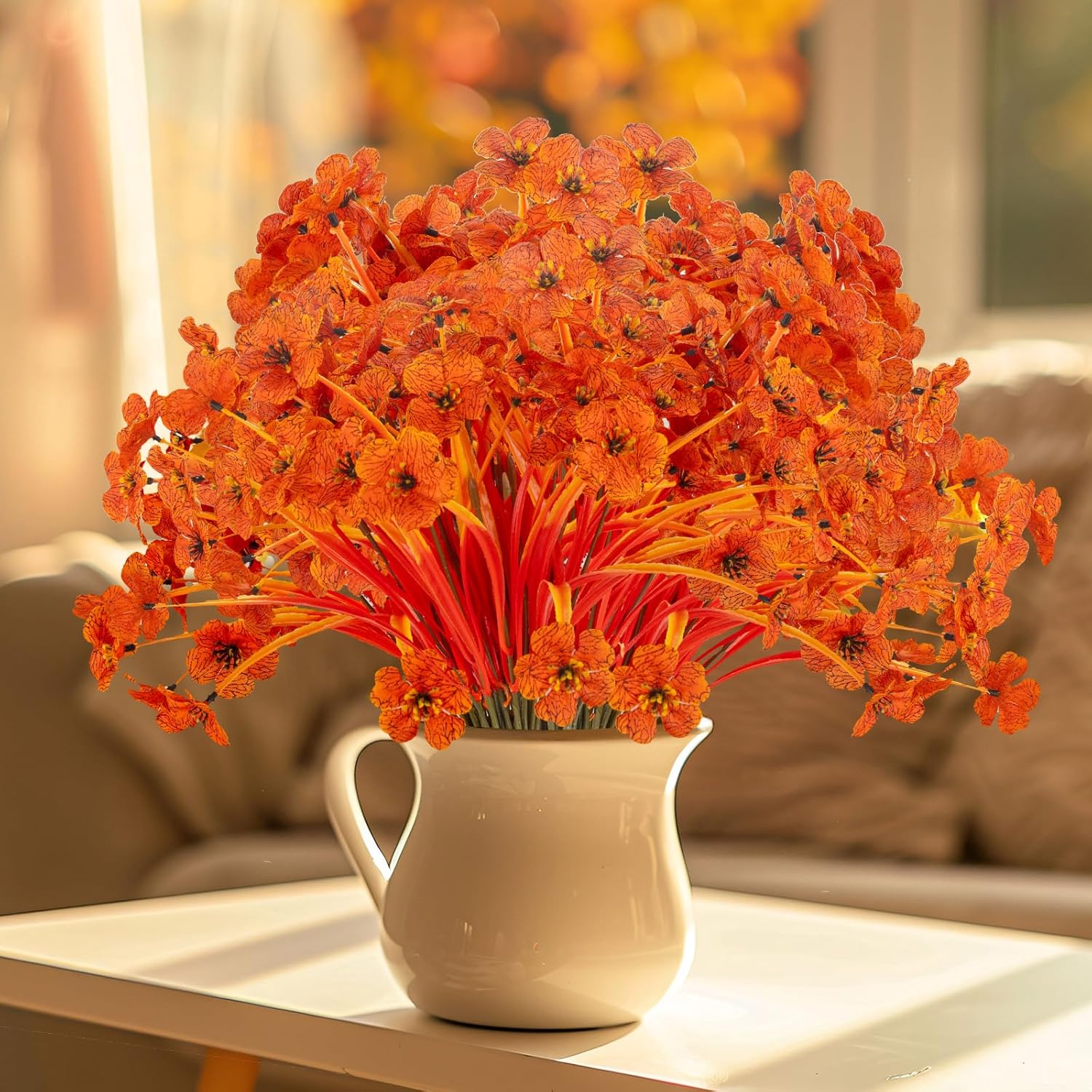 - 【JEMONG artificial Fall Red flowers】 Artificial fall plants, with autumn orange flowers and beautiful branches.They have a very natural and realistic appearance to bring you lush whether indoors or outdoors. Artificial fall flowers can be kept fresh and beautiful in the autumn. Define your garden and window box more realistically and perfectly at any time.