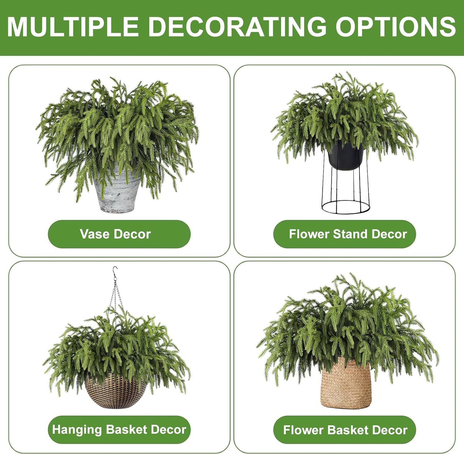- Perfect for Various Settings: Whether you’re decorating for Christmas, Thanksgiving, or any festive occasion, these realistic pine branches bring elegance and warmth to any space. Use them as Christmas tree fillers, in wreaths, garlands, vase displays, hanging baskets, flower baskets, or on plant stands to adorn your home and garden decor