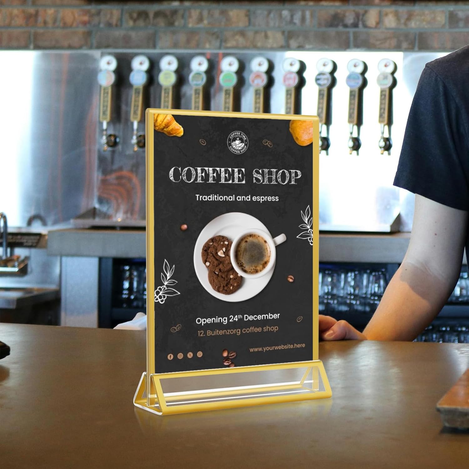 - 【Premium Acrylic Material】Our acrylic 5 x 7 gold sign holders are made of high-quality acrylic plastic glass, which can effectively resist falling. The clear acrylic sign holder will not dim or turn yellow under continuous exposure to the sunlight which offers a superb display effect.