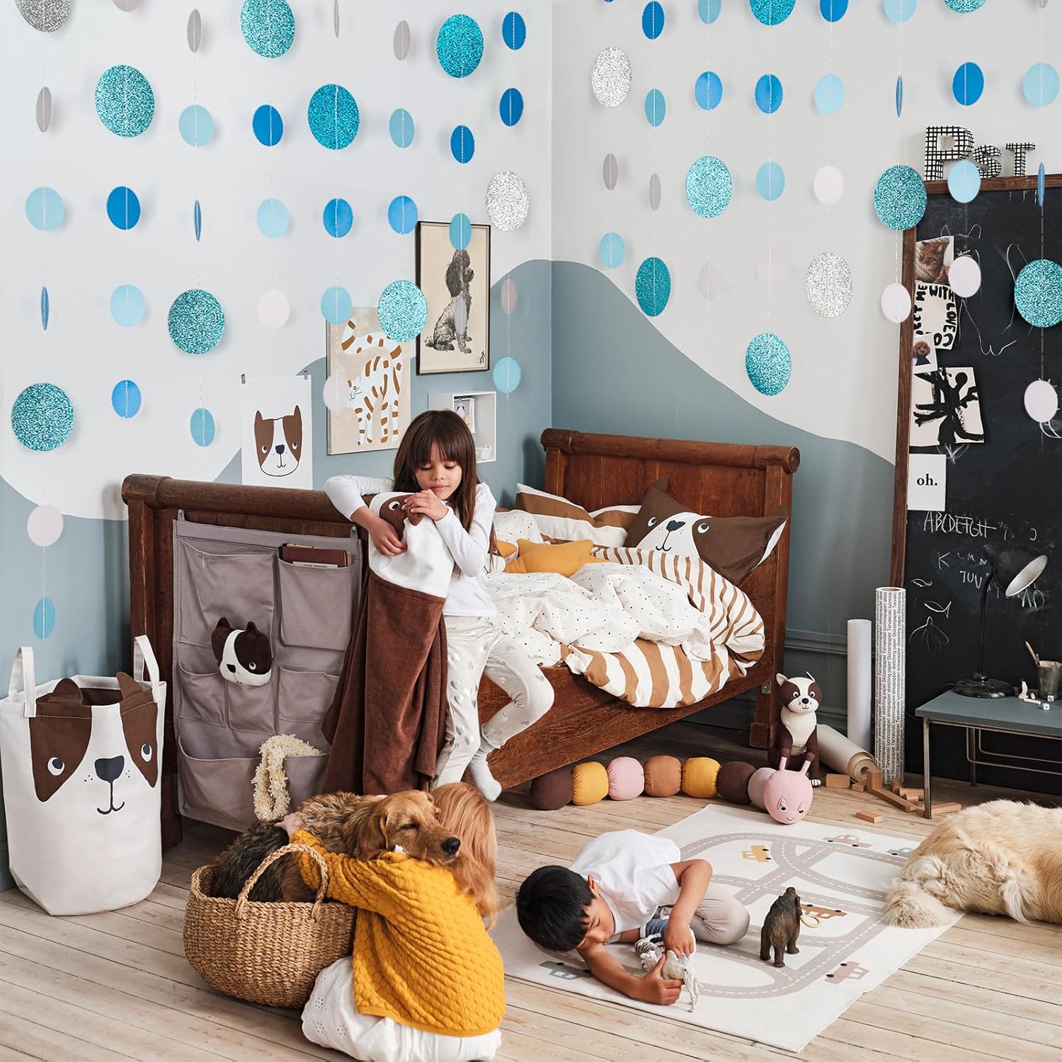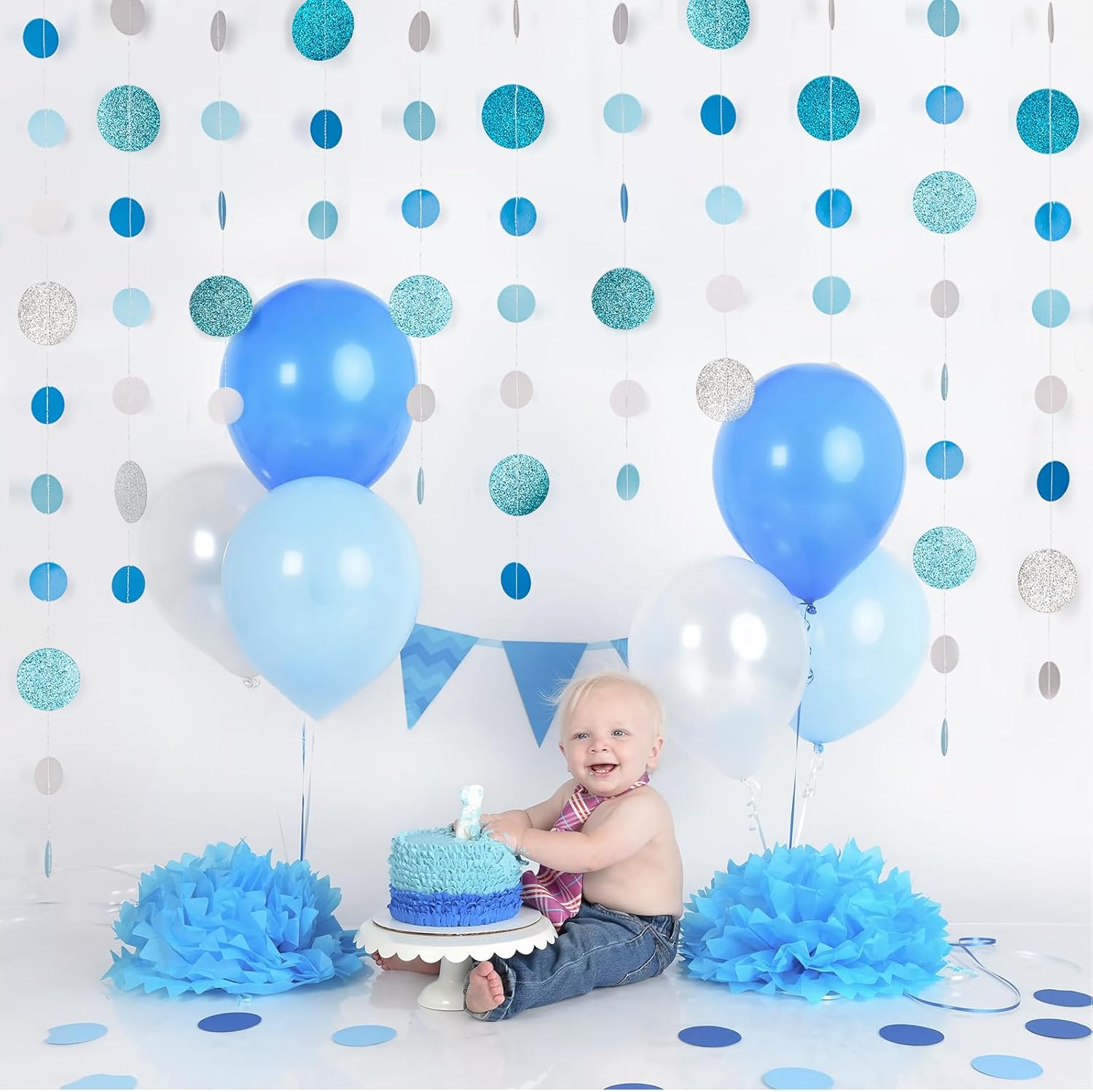 - 【Elegant & Versatile Blue Decor】 Bring a soft and sophisticated touch to your special occasions with our Blue Glitter Dot Garland. Perfect for baby showers, weddings, winter celebrations, birthdays, and holiday parties, this garland adds a stylish and festive flair.