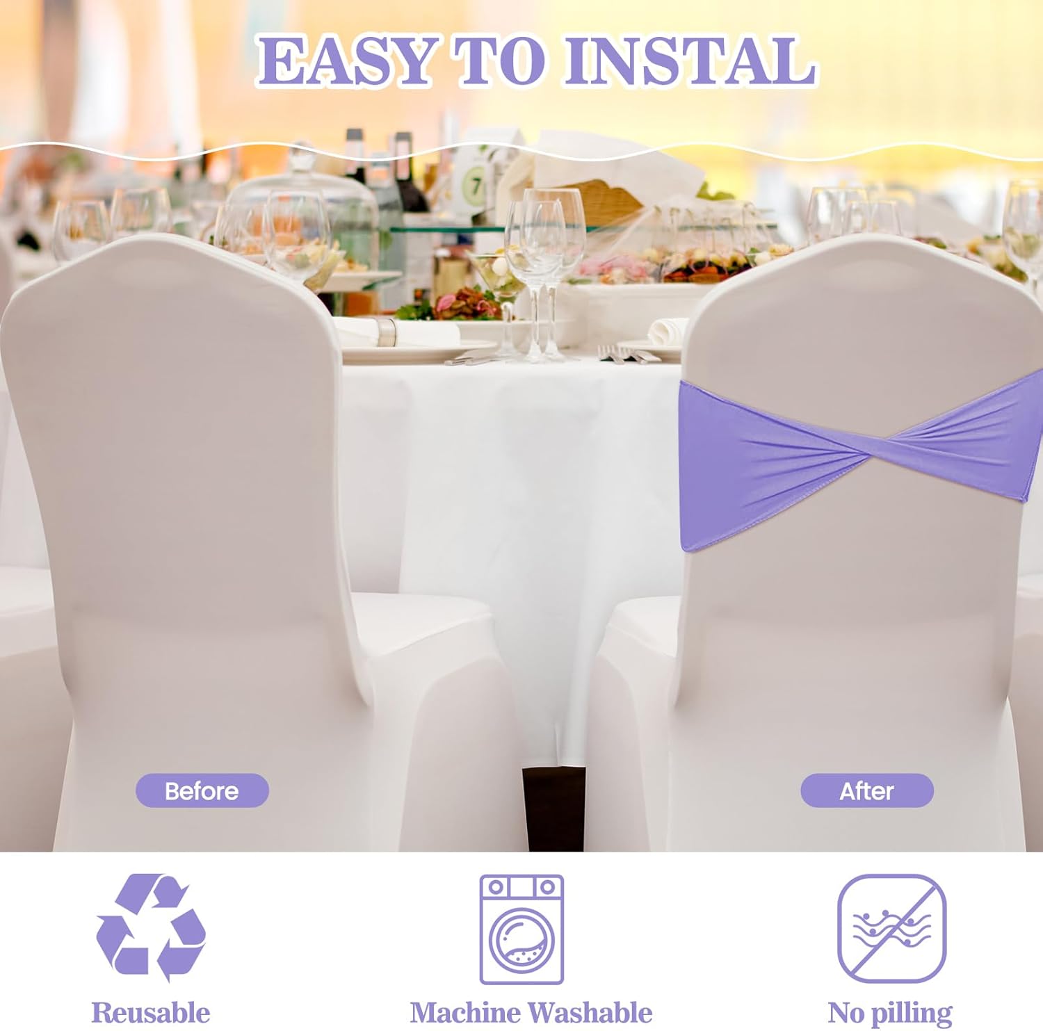 - Convenient to Use: the spandex chair sash is easy to install and remove without the need for other tools, saving time and energy, you will have more time to enjoy your life