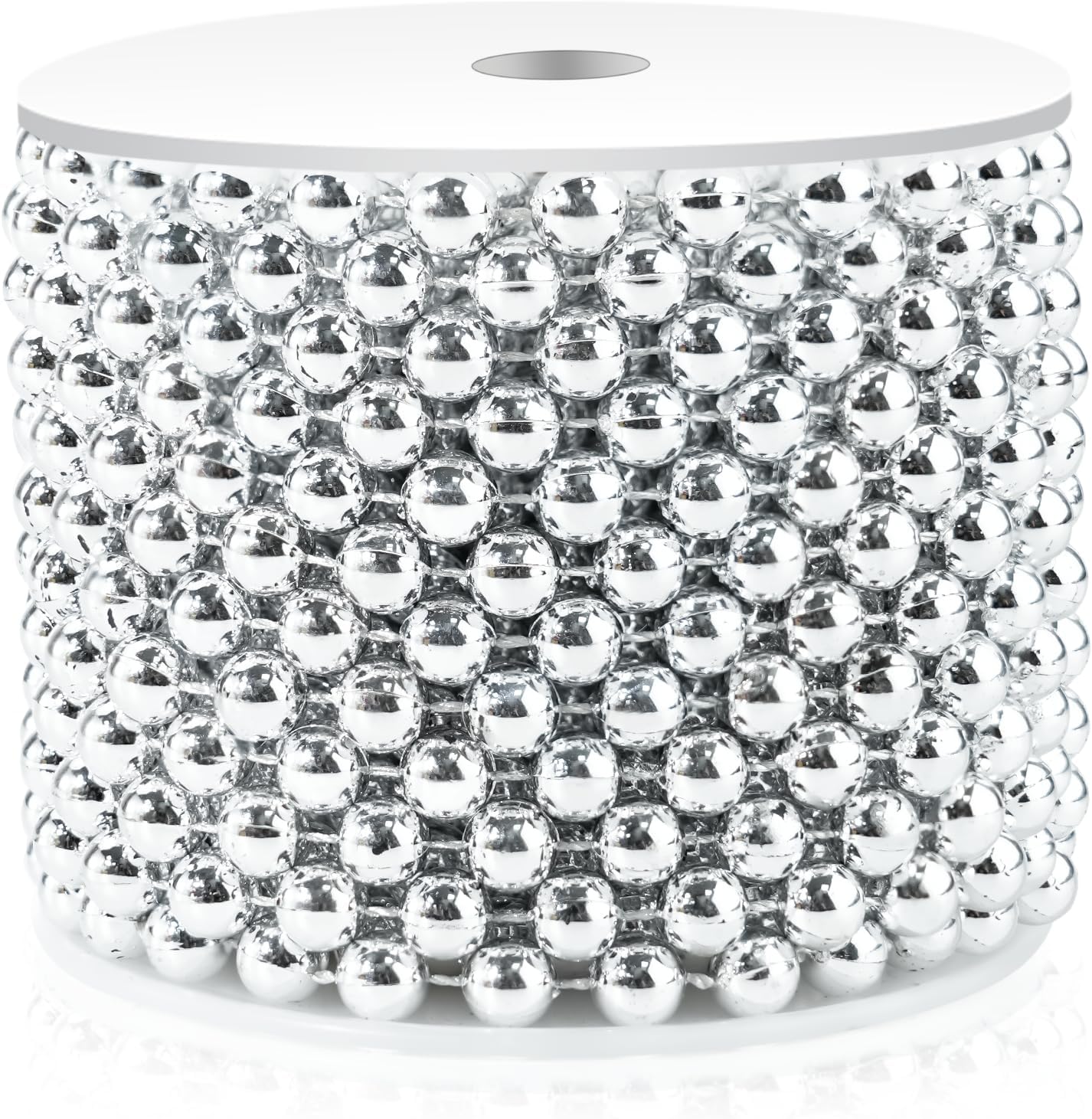 - Silver Pearl Garland - Our string of pearls is 33 feet/11 yards long per roll. Diameter of silver bead: 8mm. We have pearl garlands of different colors and sizes, you can choose according to your needs!