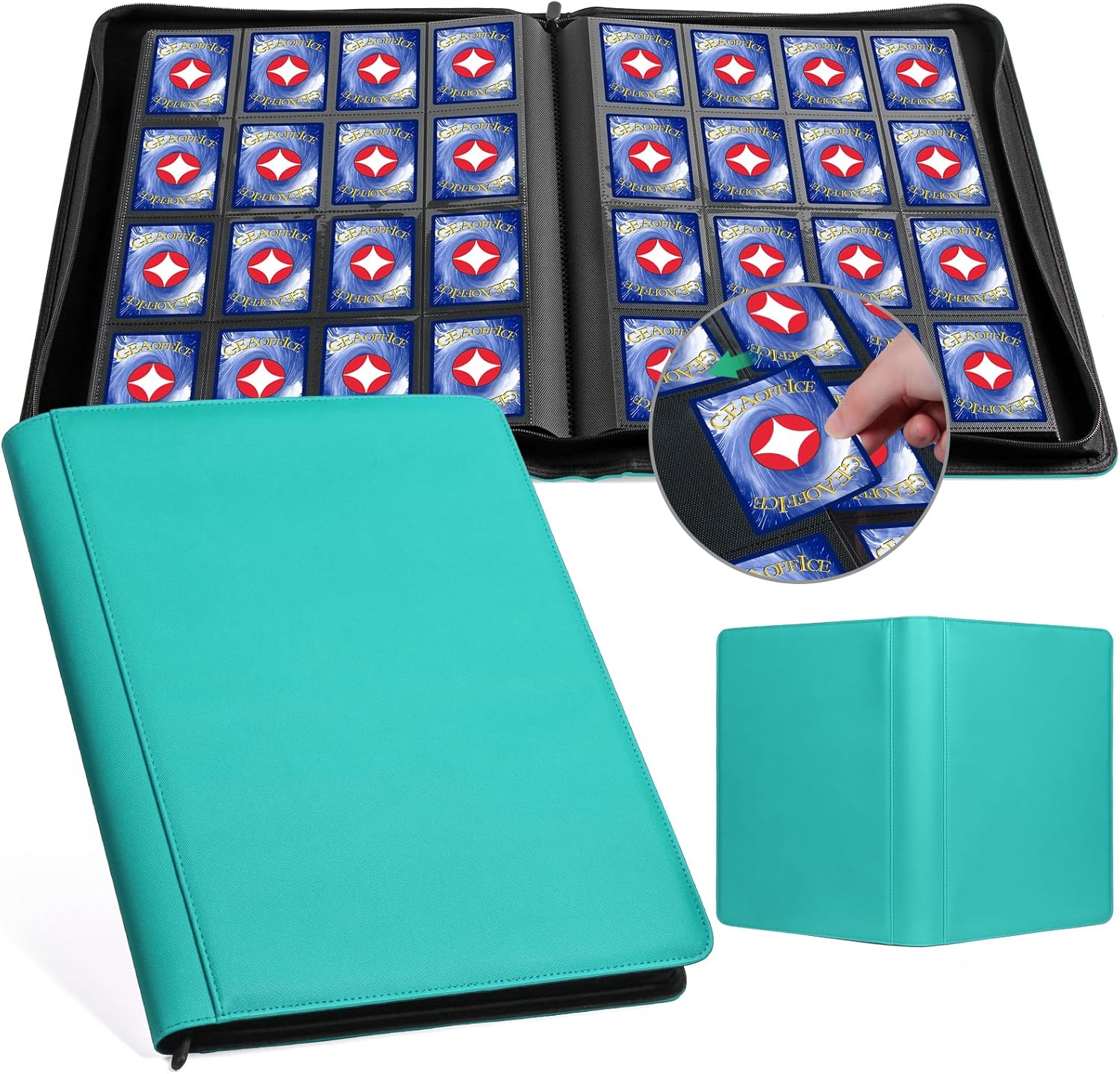 GEAoffice Premium 1000 Trading Card Binder, Large Side Loading 16 Pocket Card Collection Binder Album Folder for MTG, TCG & Sports, Turquoise