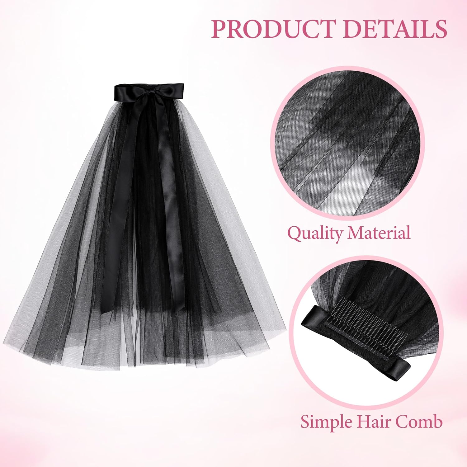 - Made of tulle and mesh.There is a clip or comb that it can make it securely on your head.