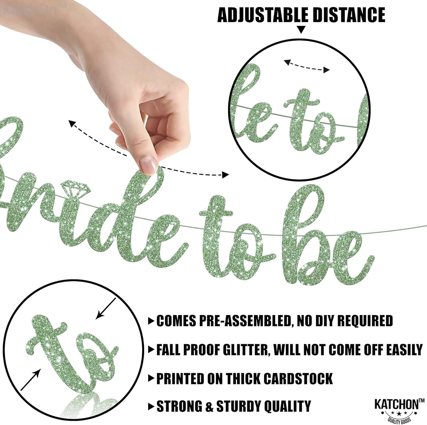 - LARGE SIZE, 10 FEET | GLITTER GREEN BRIDE TO BE BANNER WITH RING : Planning a fabulous and elegant bridal shower before you tie the knots? Decorate your event with these authentic script green bride to be banners. This vibrant 10 Feet real glitter Sage green bridal shower decoration is perfect for fun sweet bachelorette party decorations green before the most awaited day of the wedding. This bride to be banner decorations will complete your bachelorette party decorations supply kit.