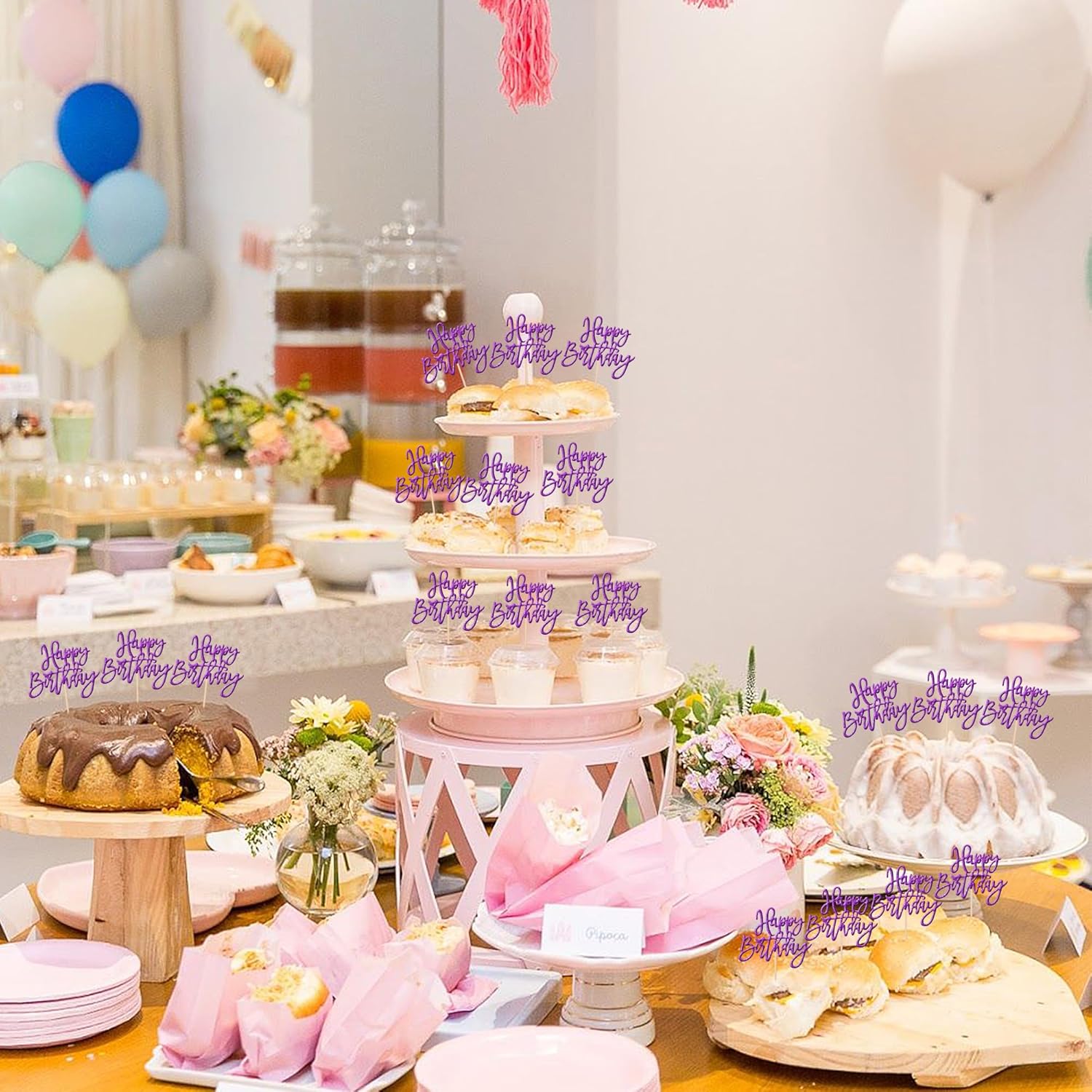 24 PCS Glitter Happy Birthday Cupcake Toppers - Purple Cupcake Picks for Celebrating Anniversary Theme Party Cake Decorations