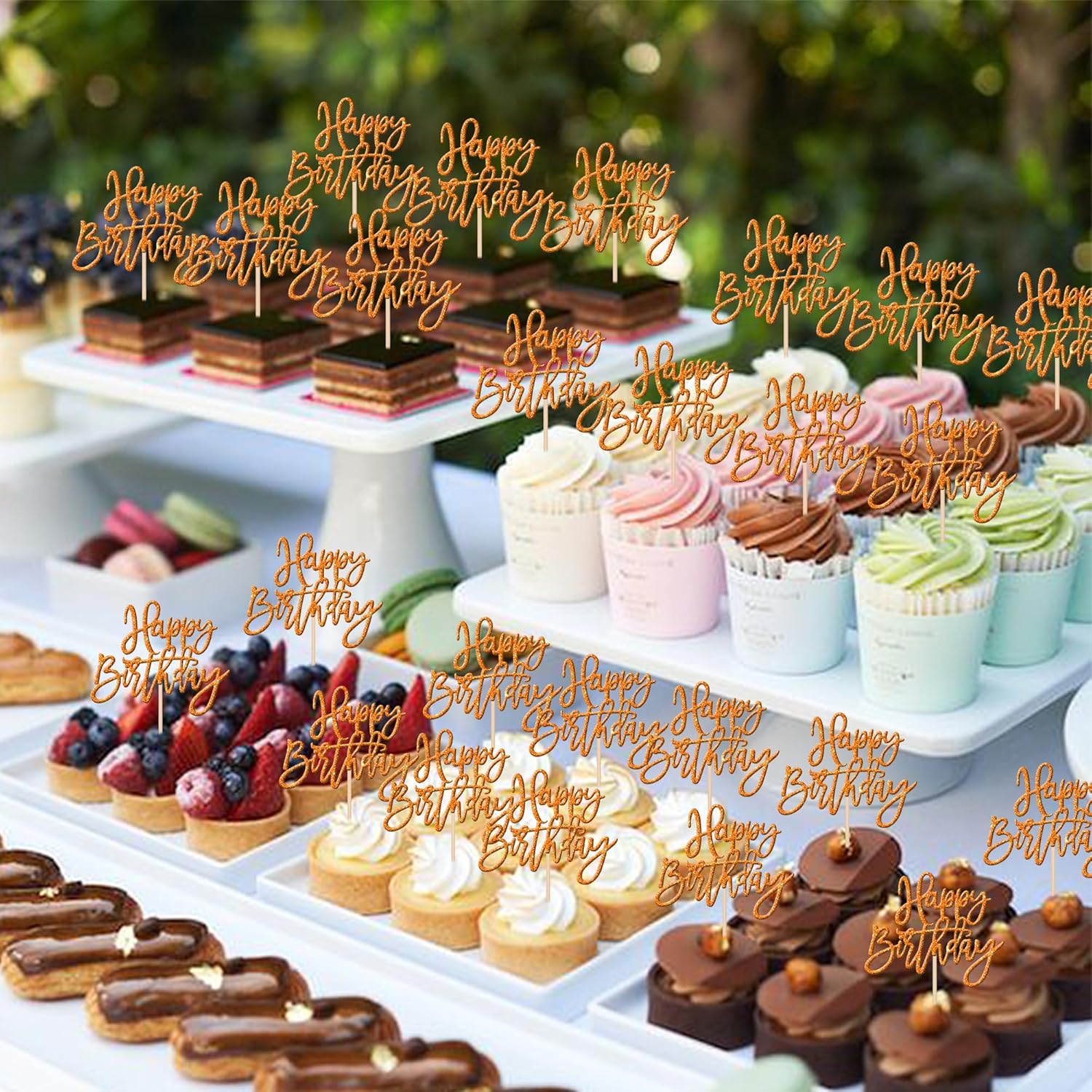 - Wide Usages ! These happy birthday cupcake toppers are perfect for happy birthday theme party, anniversary celebrating theme party cupcake decorations. they can make your cupcake more attractive and bring the fun to your party.You can also apply them for ice cream, fruits, cookies and other desserts.