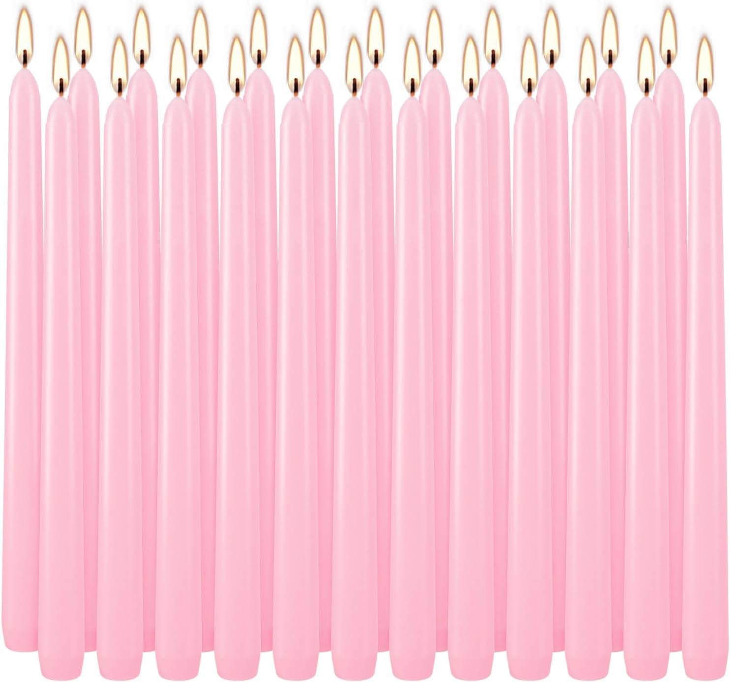 24 Pack Pink Taper Candles, 7-8 Hours Burn Time, Unscented, Smokeless and Dripless, 0.75 x 10 Inch Dinner Candle Set for Household, Wedding, Party and Home Décor Candlesticks